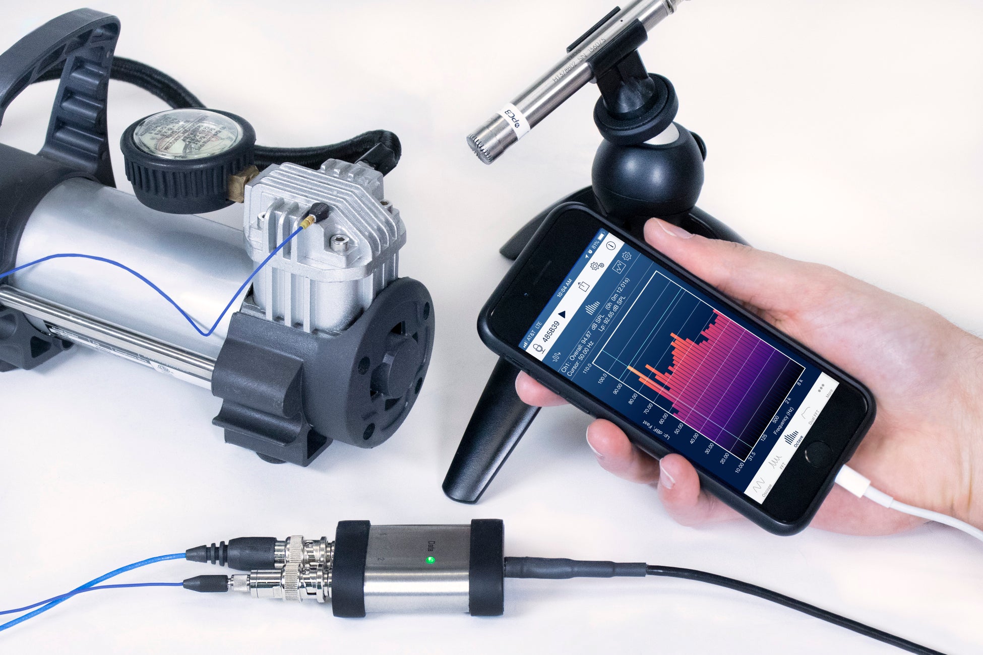 ICP®対応の加速度計やマイクロホンなどのセンサーに定電流を供給して駆動し、USB端子から信号をデジタル出力するUSB変換モジュール。タブレットやスマートフォンに接続してプラグアンドプレイで計測ができ、従来必須であった信号収録装置が不要になります。手軽に振動・音計測を行うことができます。