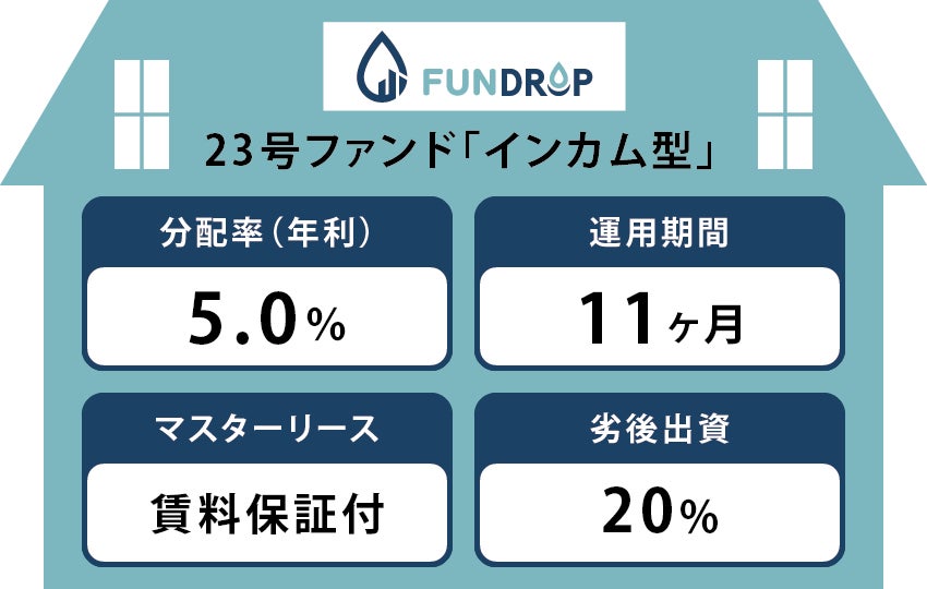 FUNDROP 23号ファンドは、利回り(年利)5%、賃料保証付きにて運用