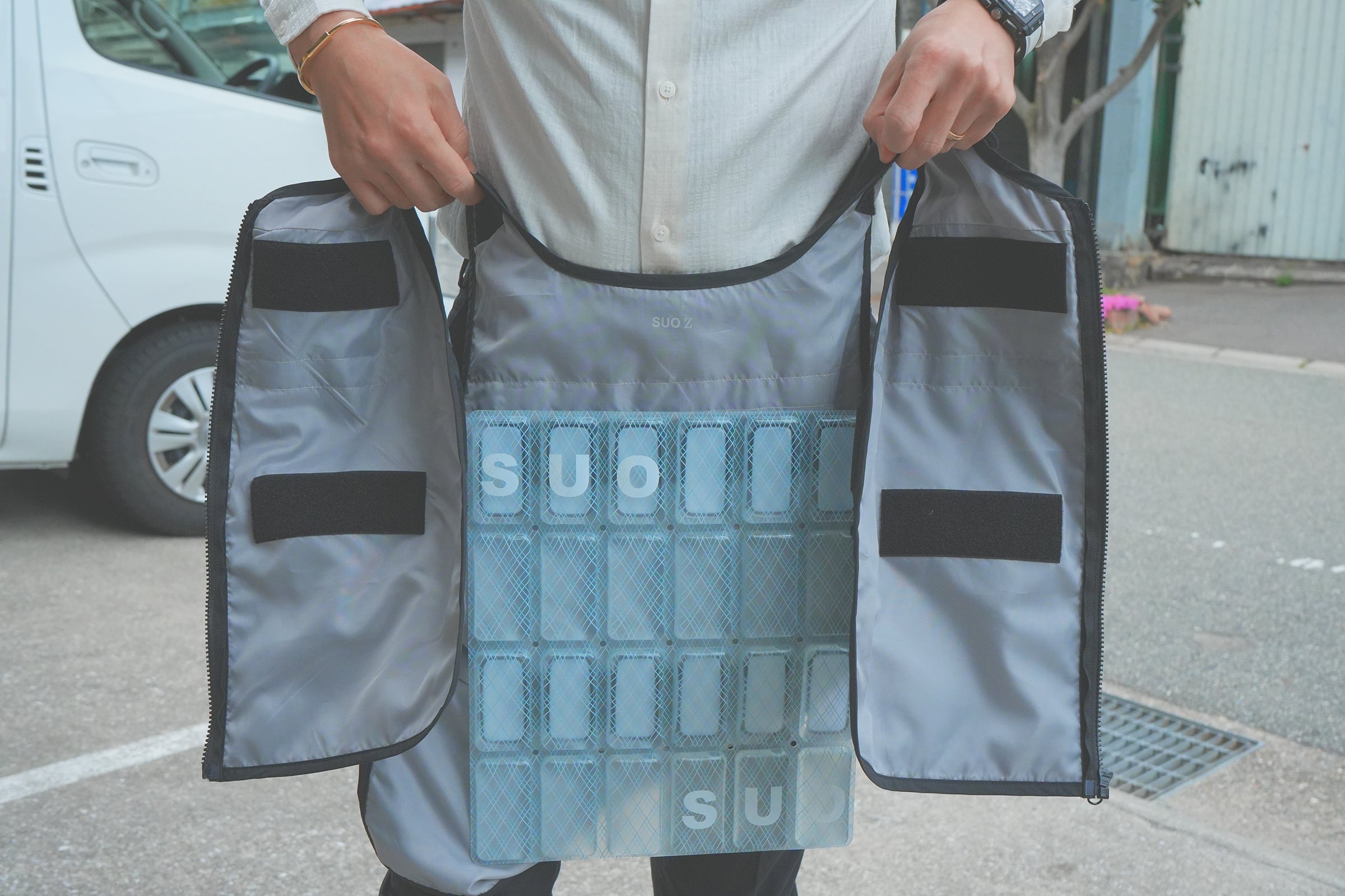 「SUO Z クールベスト」は市場で販売されているファン付きのベストと組み合わせることで、より一層の冷感を得ることができます。