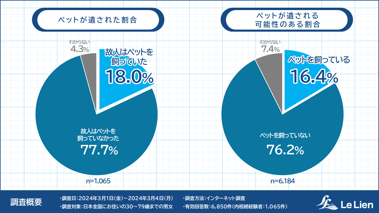 【相続に関する全国調査2024 結果発表最終回】親の死による相続の際、ペットが遺されたのは18%以上 次の相続でペットが遺される可能性は16%以上