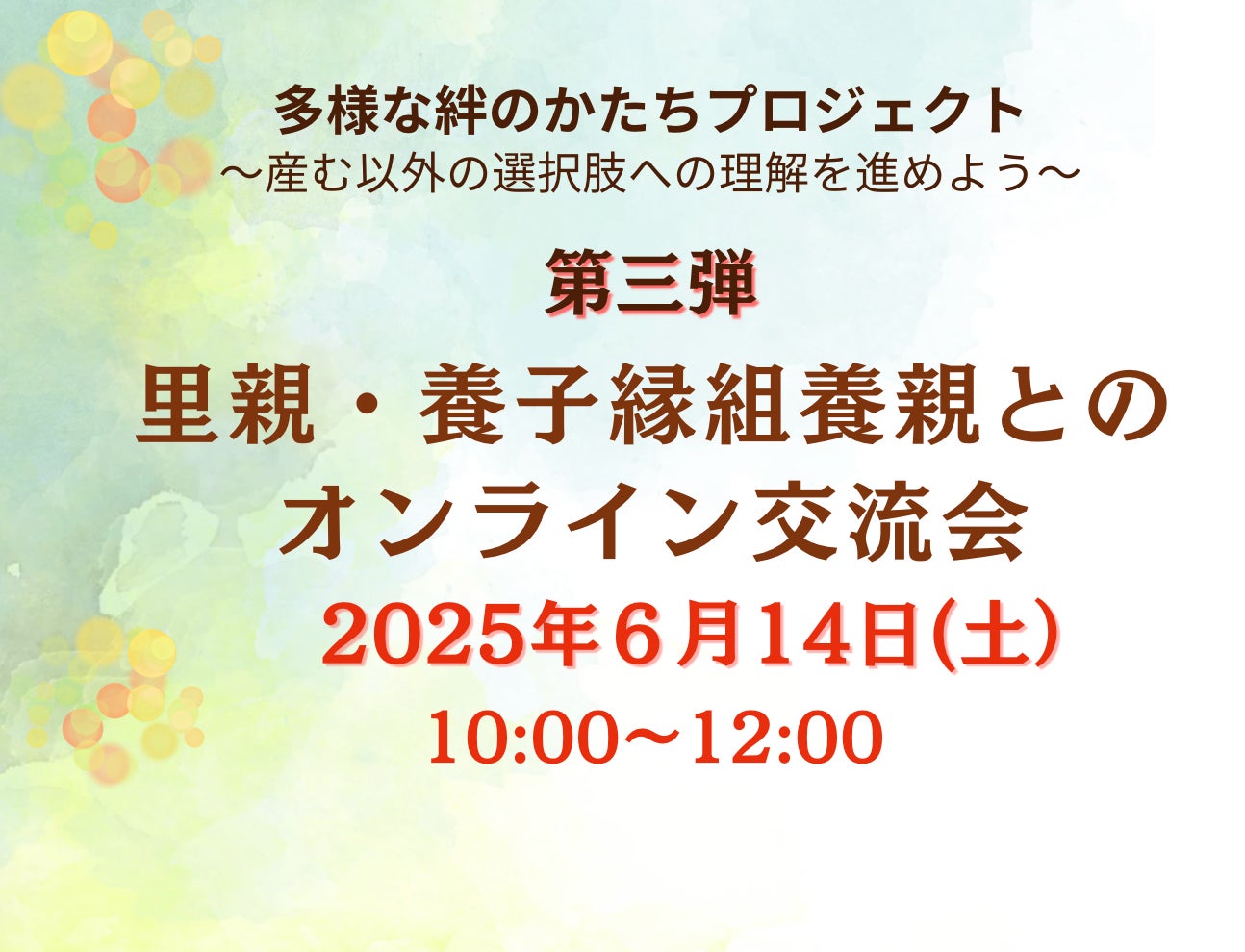 多様な絆のかたちプロジェクト~産む以外の選択肢への理解を進めよう~ 第三弾 「里親・養子縁組養親とのオンライン交流会」