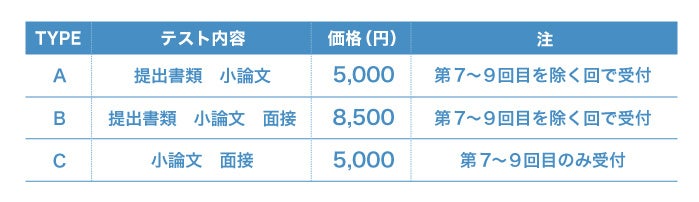 受験科目に応じてA, B, Cの3つのタイプがございます。