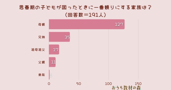 ARINA株式会社が運営する幼児、小学生の親御さん向けの教育メディア「おうち教材の森」(https://naki-blog.com/study/)は、日本全国の中学生以下のお子さんをお持ちの親御さんを対象に「思春期の子どもが困ったとき1番頼りにする家族は?」とアンケート調査を実施しました。その結果を公表します。