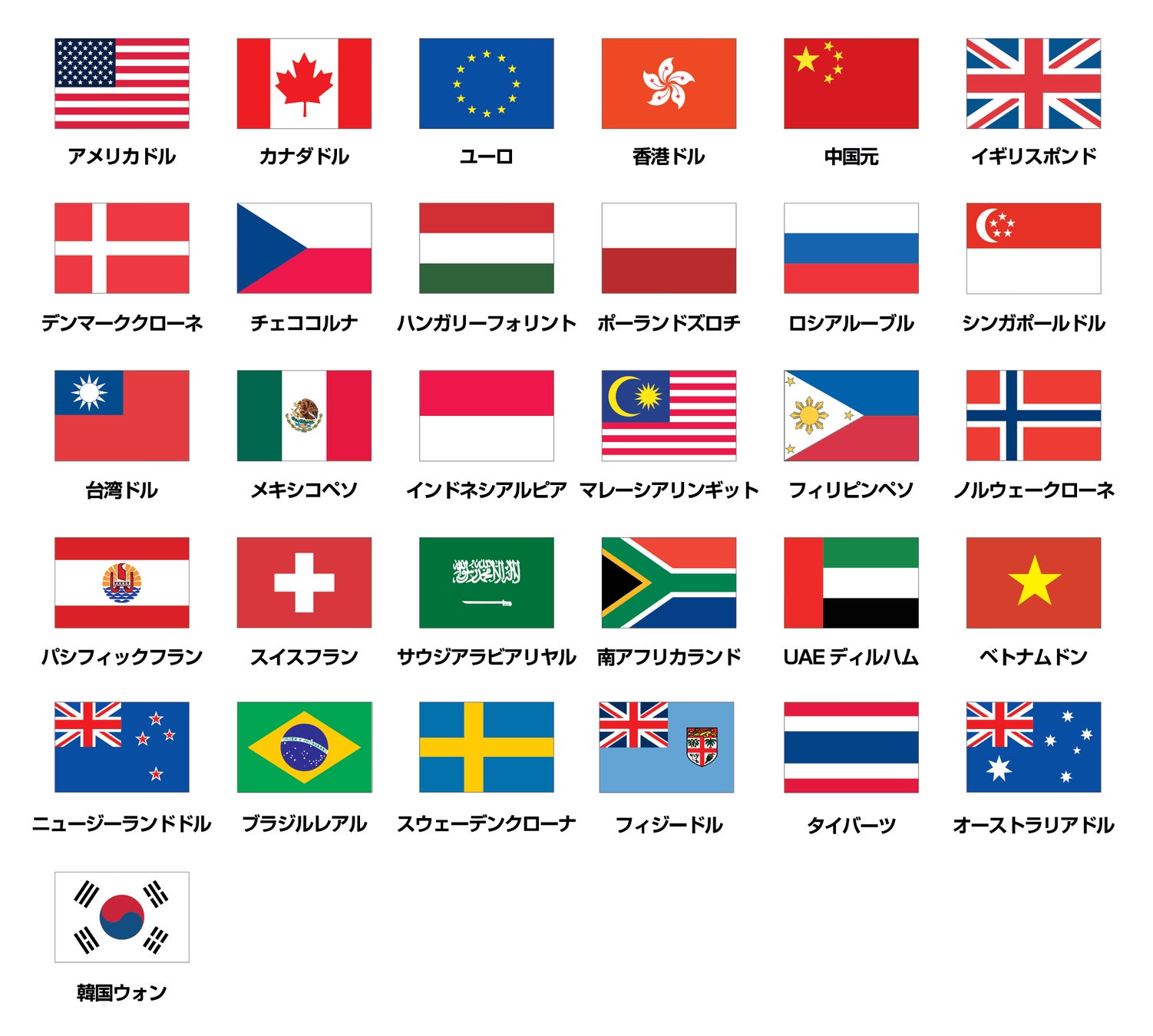 ※2025年2月現在、以下の通貨の取扱いを中止しています。