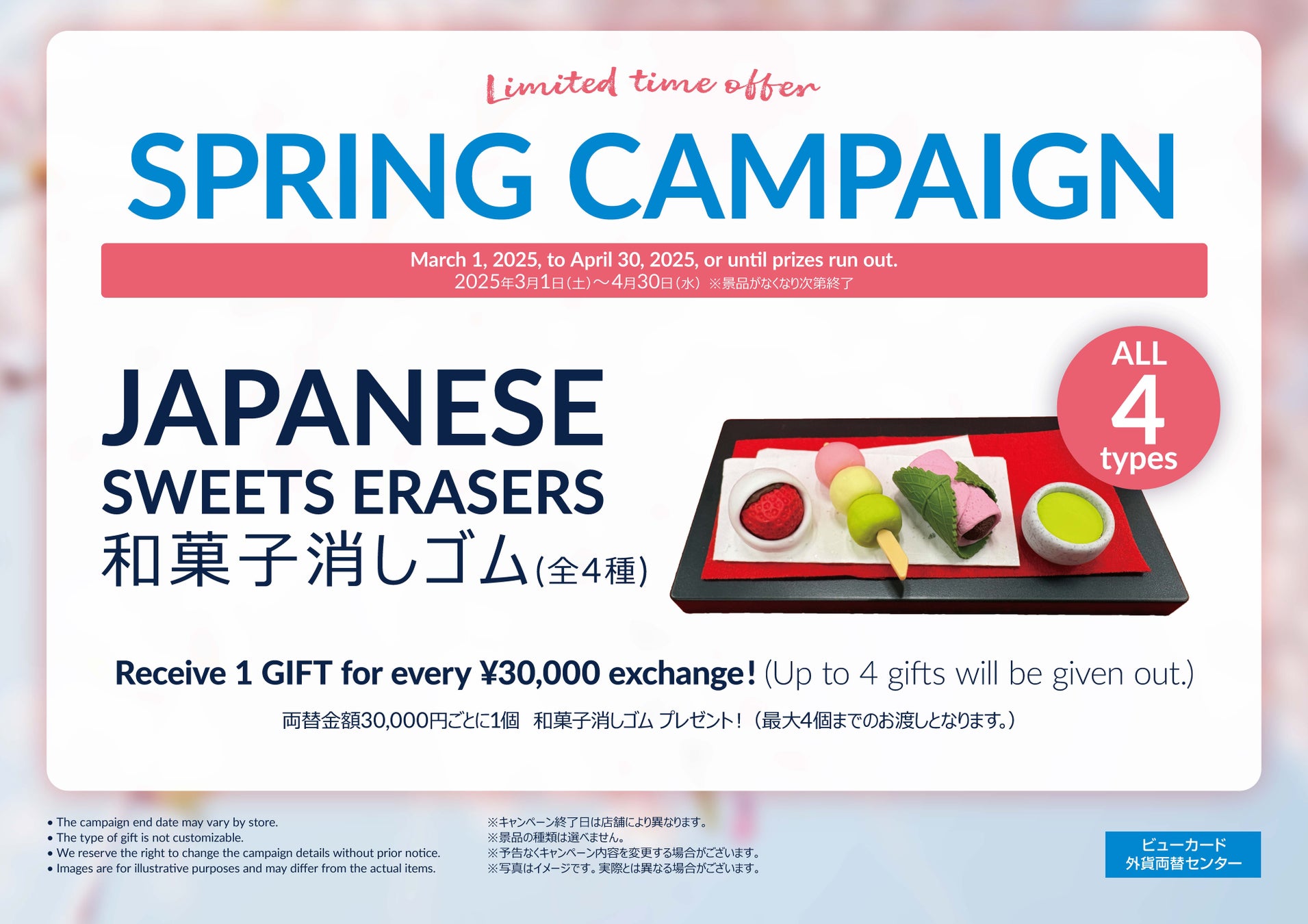 ■株式会社ビューカード(東京都品川区、代表取締役社長:新井 健一郎)は、2025年3月1日(土)から4月30日(水)までビューカード外貨両替センターにて「SPRING CAMPAIGN」を実施します。