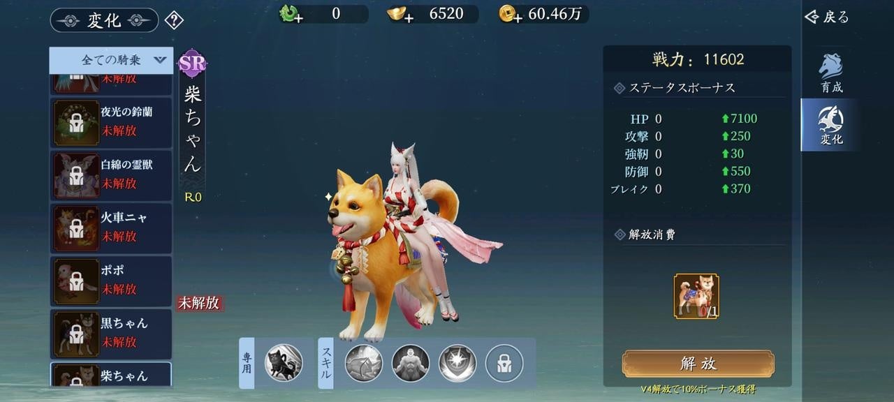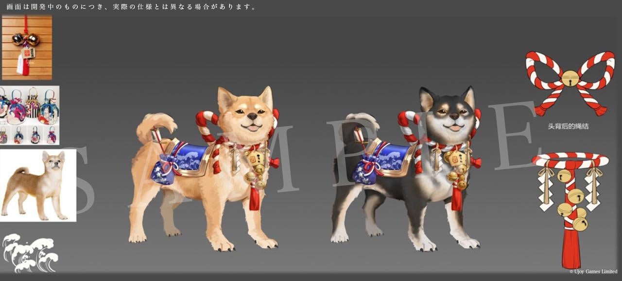 柴犬をモチーフにした騎乗できるレアリティ:SRのキャラクター。向かって左は「柴ちゃん」で、右は「黒ちゃん」と呼ばれています。日本の紅白のしめ縄をリボン状にしたデザインの首輪をしており、さらにお正月飾りのような雰囲気も。細かな意匠から、和風な雰囲気を感じます!