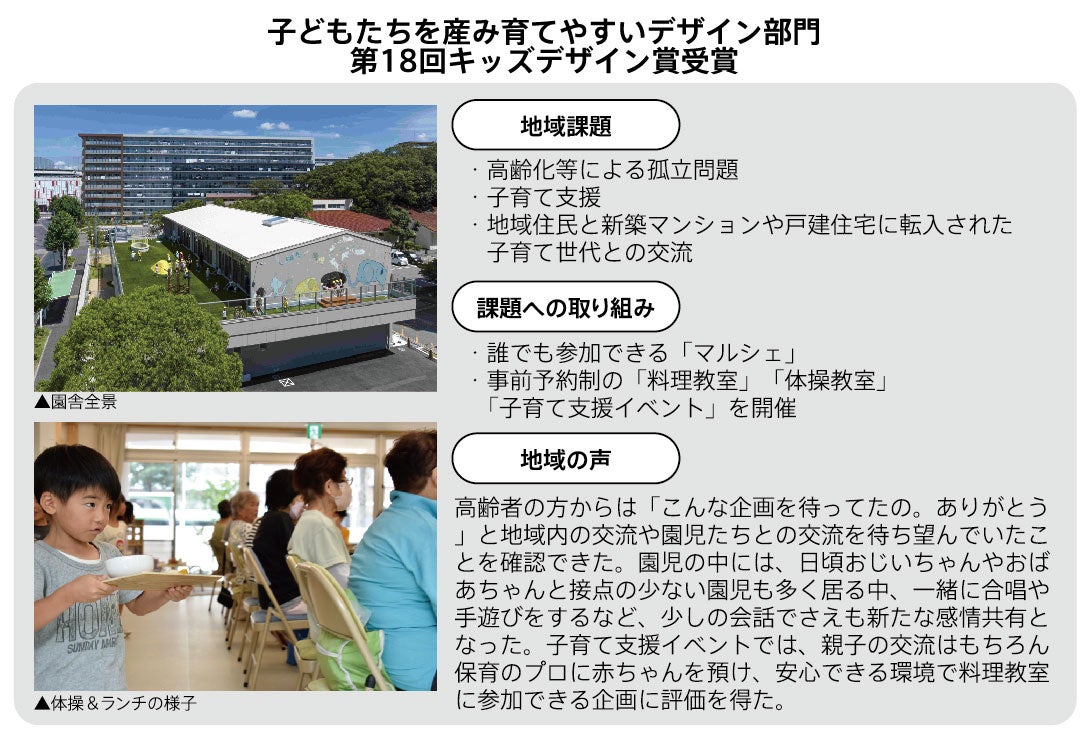 第18回キッズデザイン賞受賞 地域の課題解決で恩返し「保育園を核とした地域コミュニティ活動」