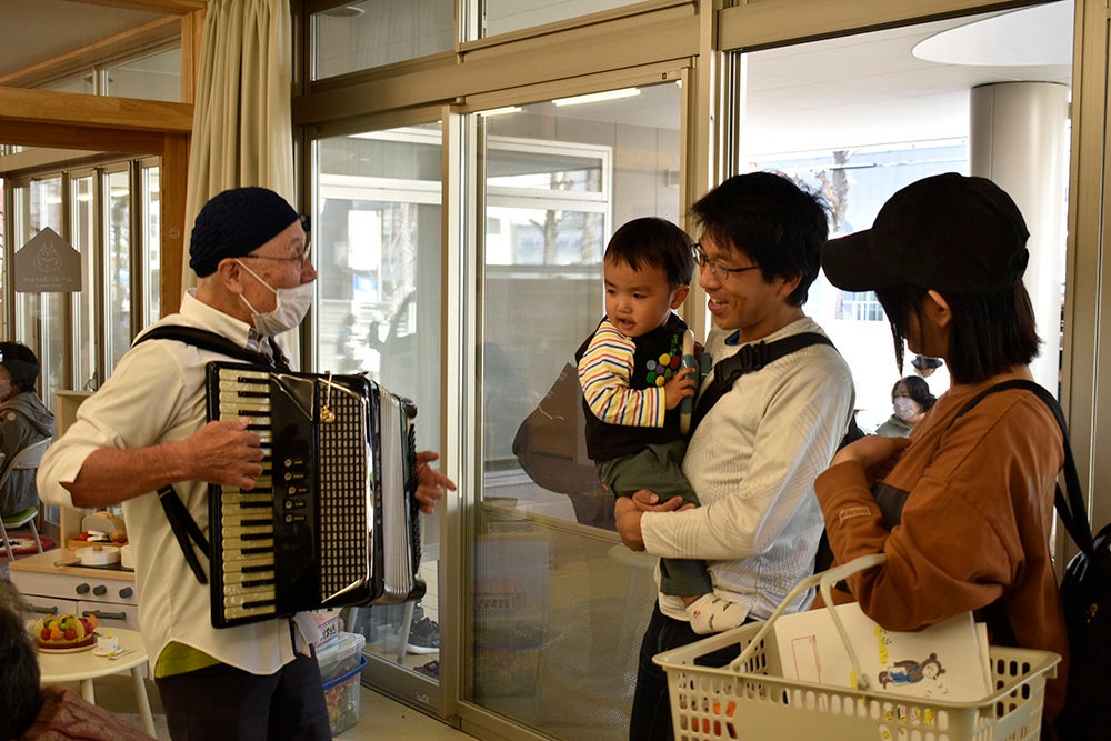 移転先である市営住宅の住民の高齢化等による孤立問題や、地域住民と新築マンションや戸建住宅に転入された子育て世代との交流、子育て支援がこの地域の課題であると考え様々なイベントを開催。イベントは、通常保育を行っている平日に設定し、イベント参加者同士の交流だけでなく保育中の園児や職員との交流も同時に実現するプログラムとし、参加者からはたくさんの喜びの声をいただきました。