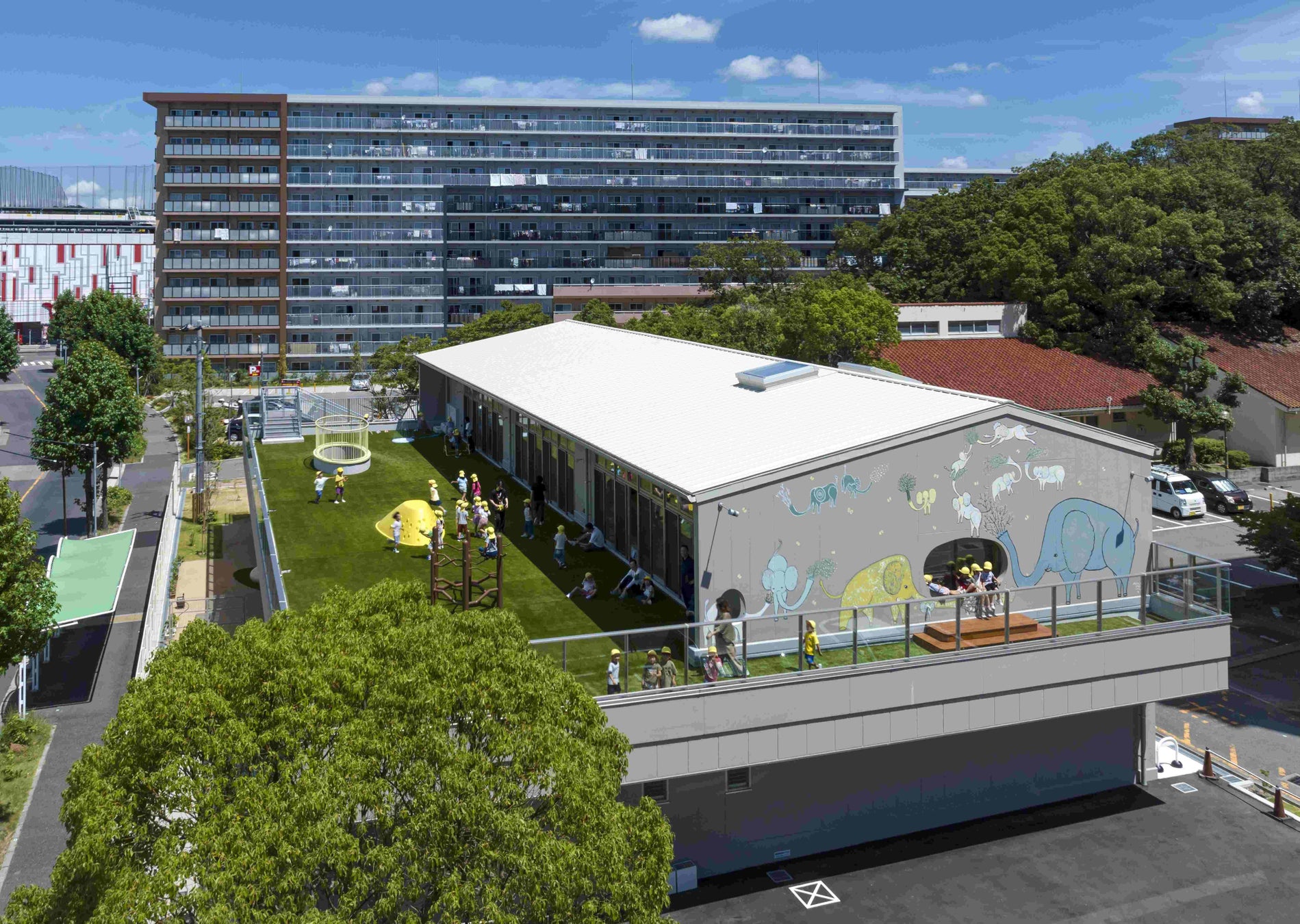 以前は、住宅街にある公立幼稚園を利用しており、地域住民との交流・イベントスペースの確保がで