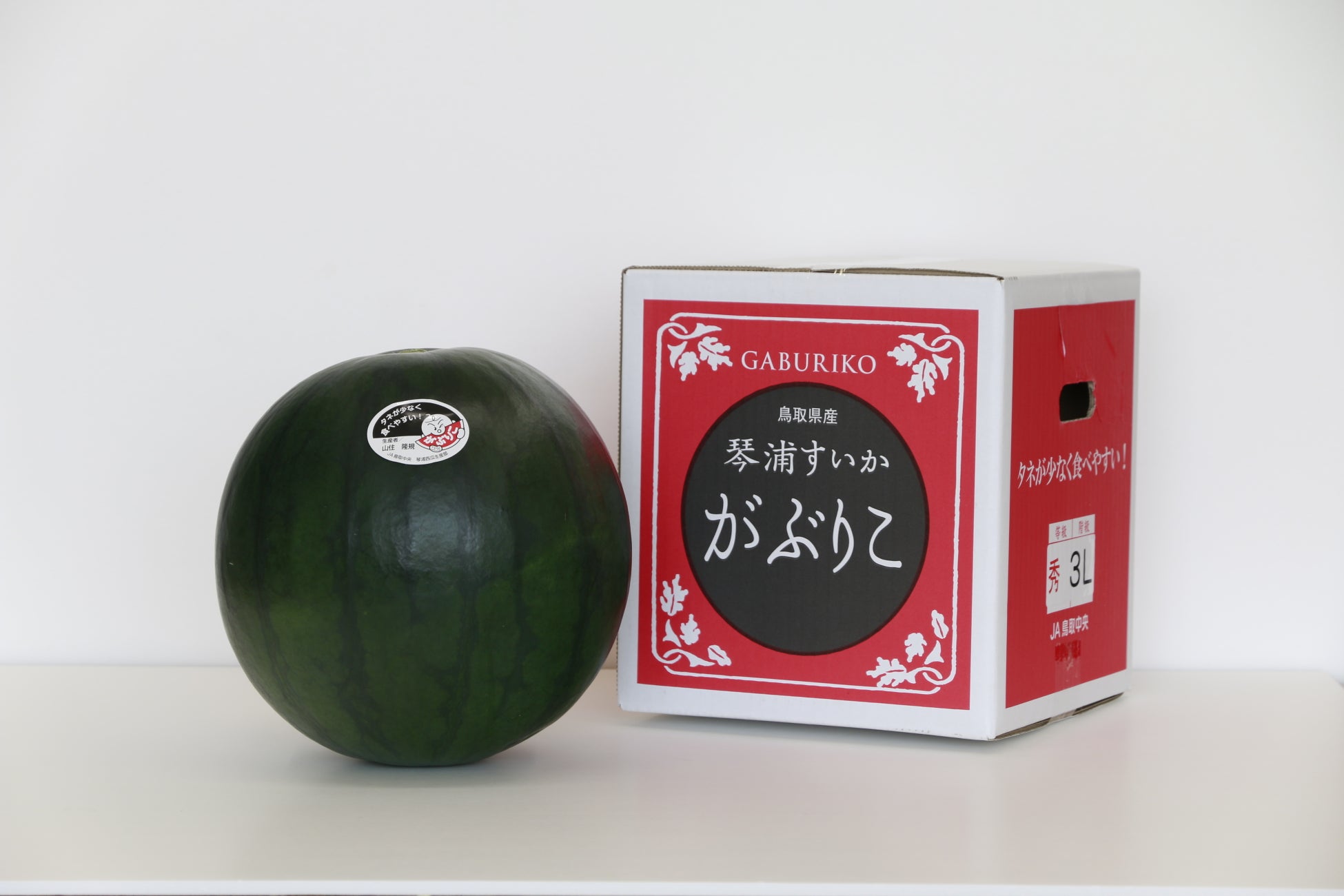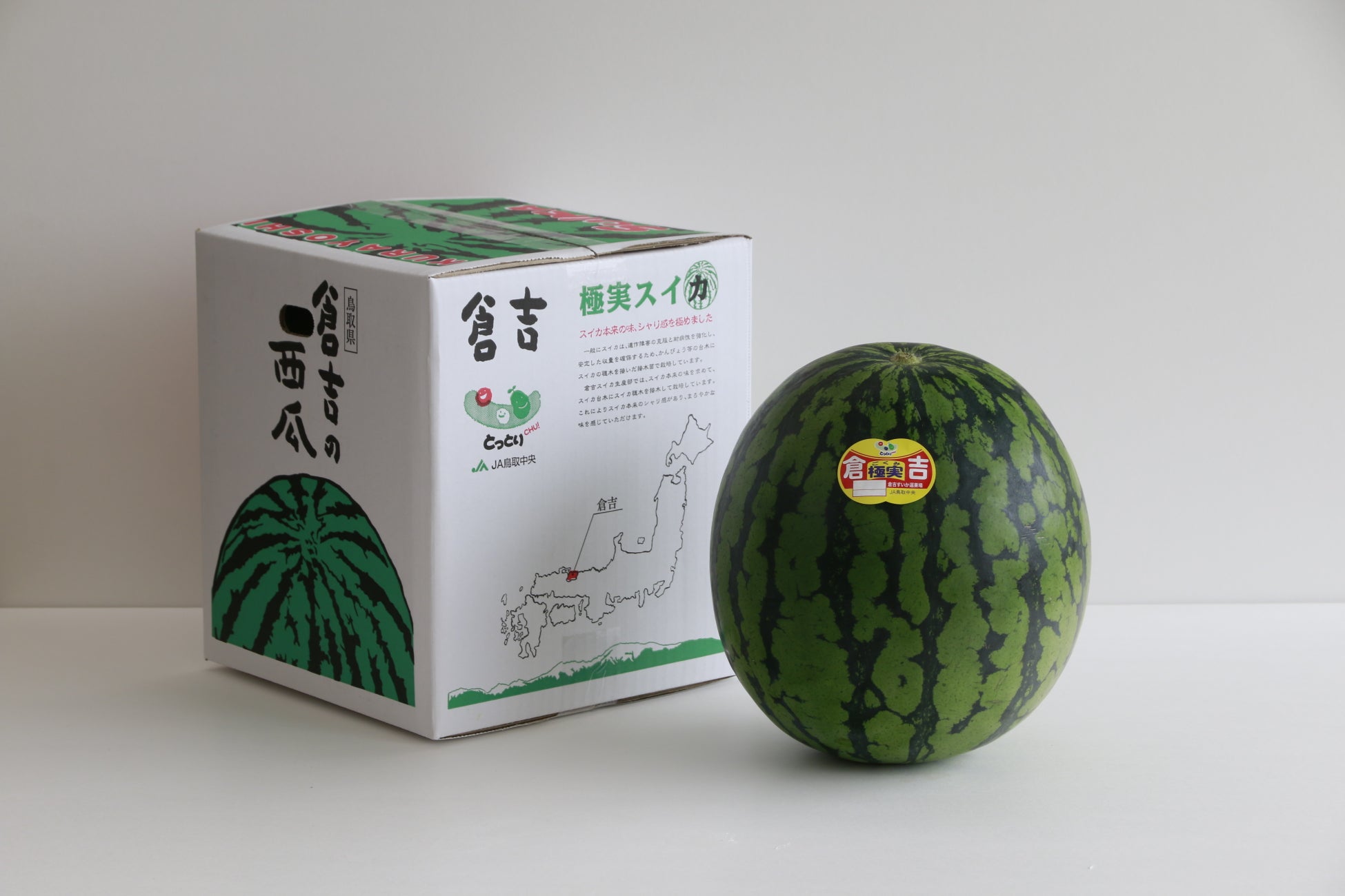 県内でも有数のスイカの産地北栄町(旧大栄町)で栽培される大玉の「大栄西瓜」は、地理的表示保護制度(GI認定)に登録されており、形状、品質にばらつきの少ない安定した品質のスイカとして評価されているブランドスイカです。