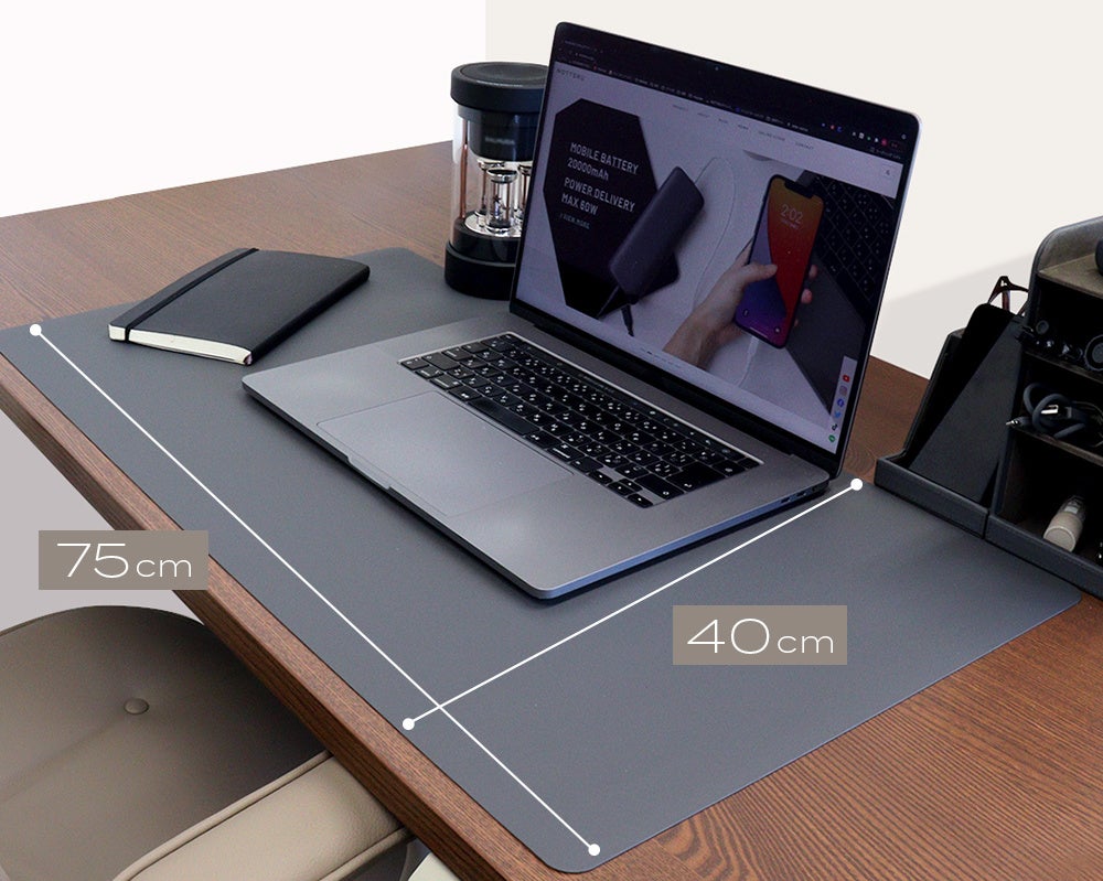 大きめの横75cm・縦40cmのデスクマットで一枚敷くだけで、デスク周りの印象が変わります。カラーも5色展開で、自分らしいインテリアコーディネートを楽しめます。