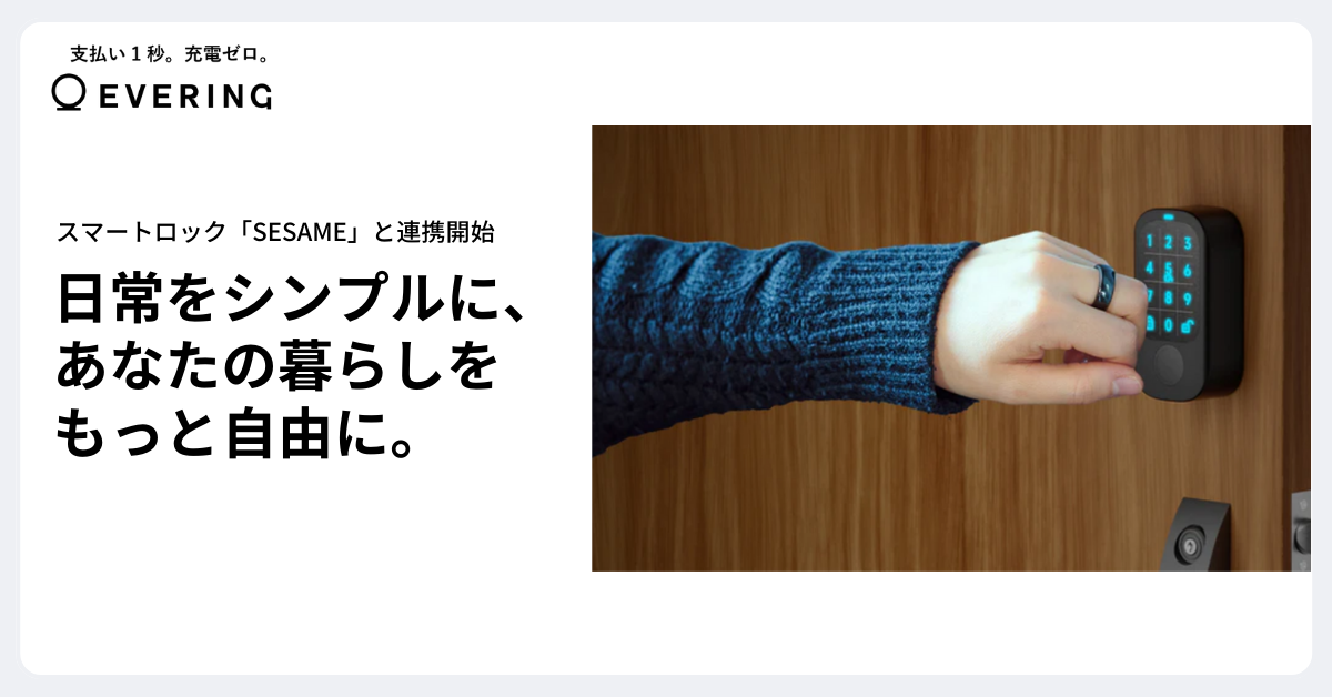 鍵もスマホもいらない、ドアの解錠は指輪をかざすだけEVERING、スマートロック「SESAME」との連携開始
