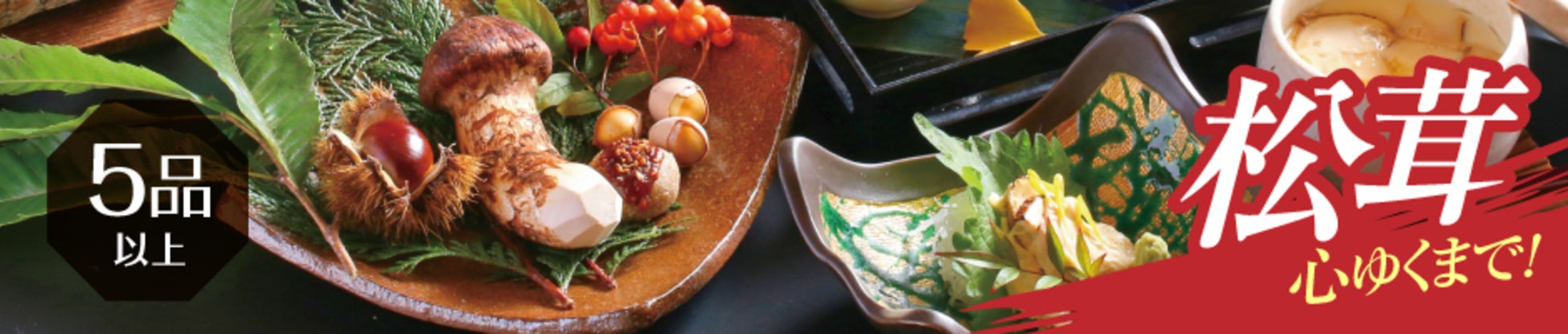 秋の味覚の代表食材である松茸。その松茸を、土瓶蒸し・焼き松茸・松茸ごはんなど、さまざまな料理で5品以上楽しめる全国のお宿をご紹介しています。