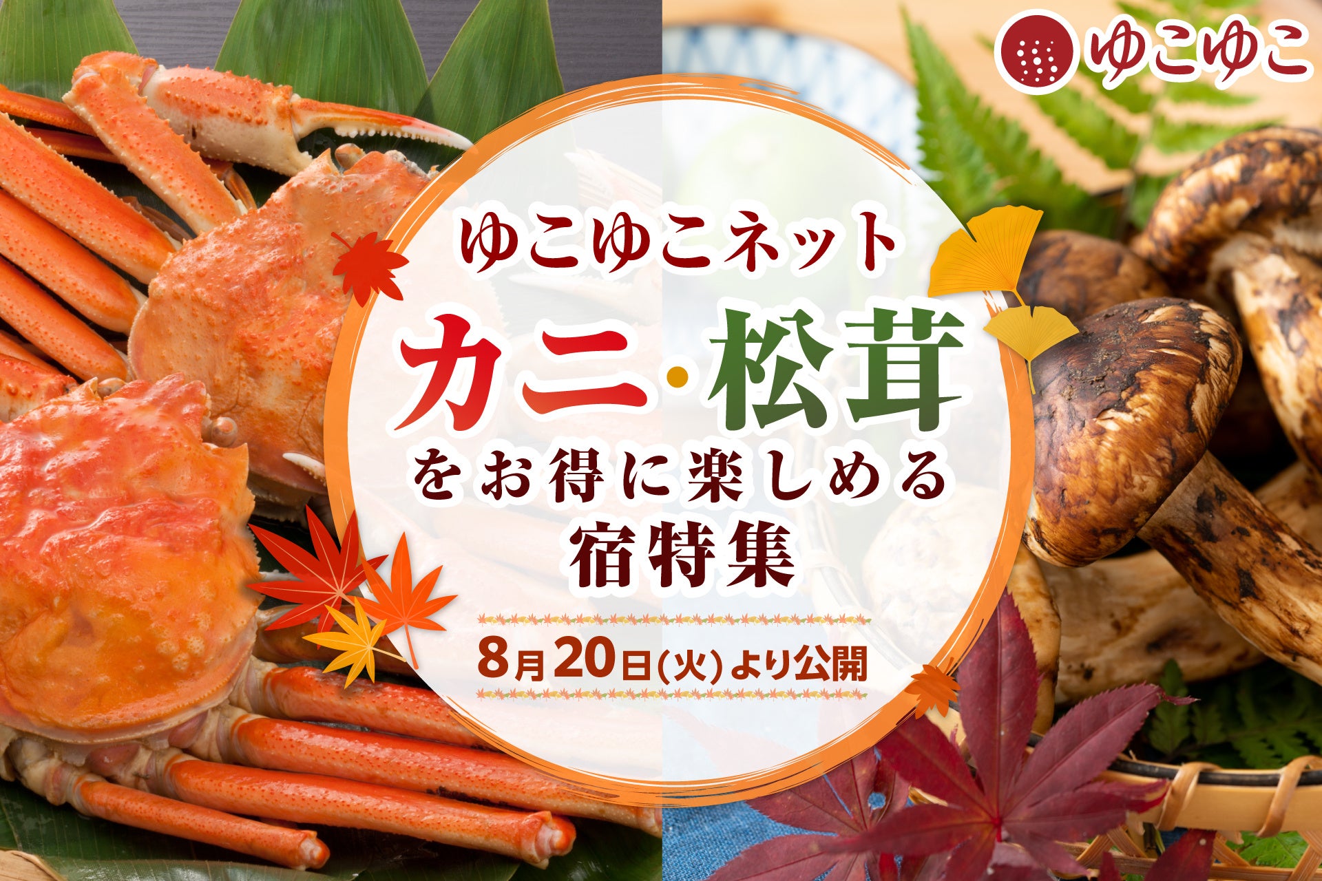 温泉宿のお電話予約サービス「ゆこゆこ」やシニアマーケティング支援事業を提供する株式会社ゆこゆこ(本社:東京都中央区、代表取締役社長:徳田 和嘉子)は、宿泊予約サイト「ゆこゆこネット(https://www.yukoyuko.net/)」にて、8月20日(火)よりカニ・松茸の“贅沢食材”が楽しめる特集を公開しました。カニ特集ページには通年の企画に加え、「1泊2食付き1万円以下でカニが食べられる宿」など、毎年人気の特集が新たに加わりました。松茸特集ページは昨年に引き続き、今年度初公開となります。