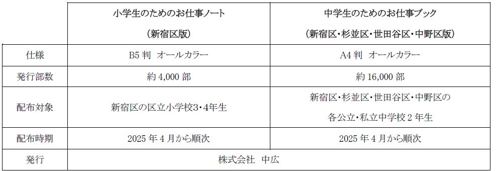 【2025年度版「小学生のためのお仕事ノート(新宿区版)」「中学生のためのお仕事ブック(新宿区・杉並区・世田谷区・中野区版)」概要】