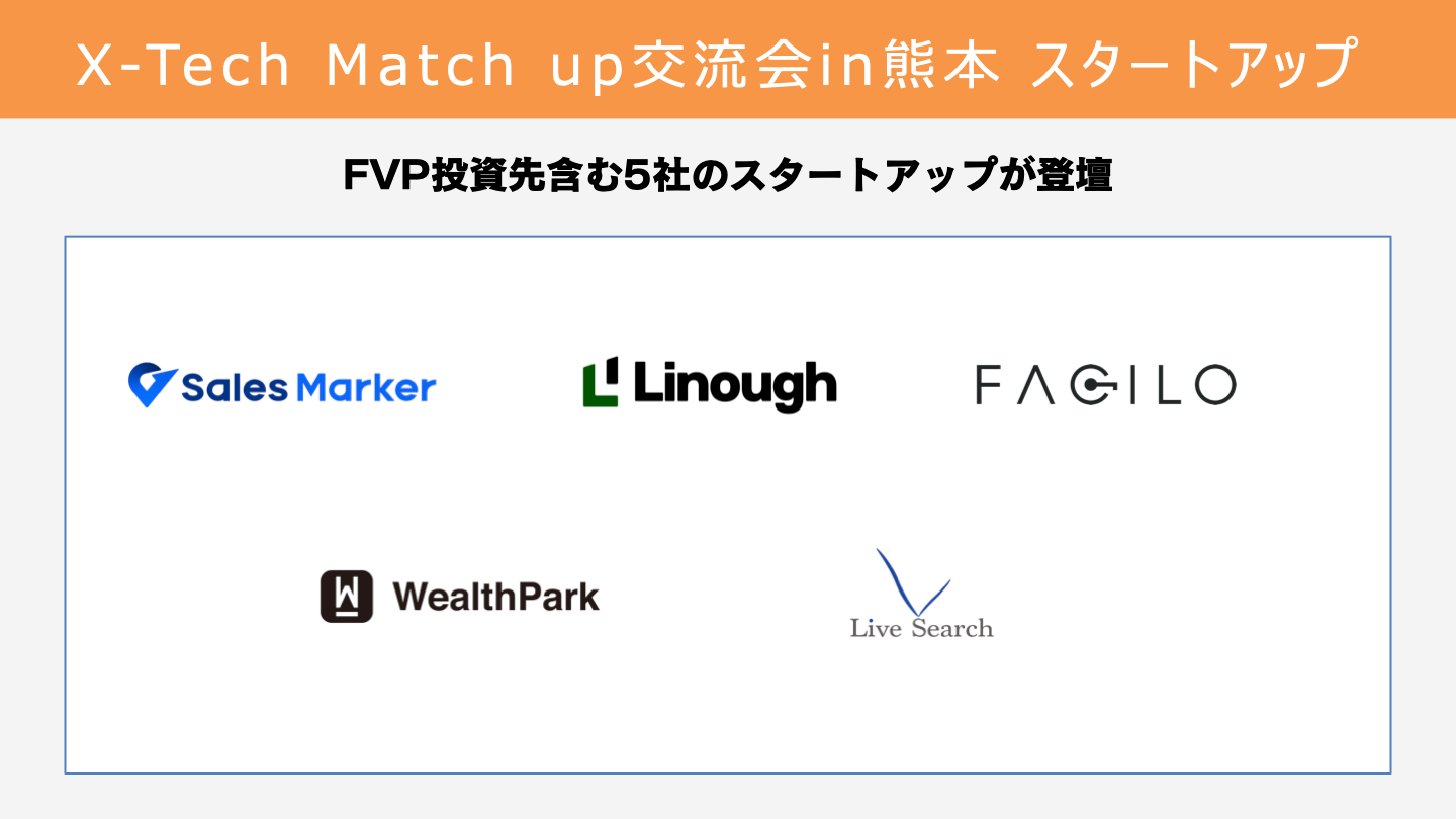 FVPの投資先含む合計5社のスタートアップと、ふくおかフィナンシャルグループ・熊本銀行提携不動産会社合計XX社に参加いただきました。