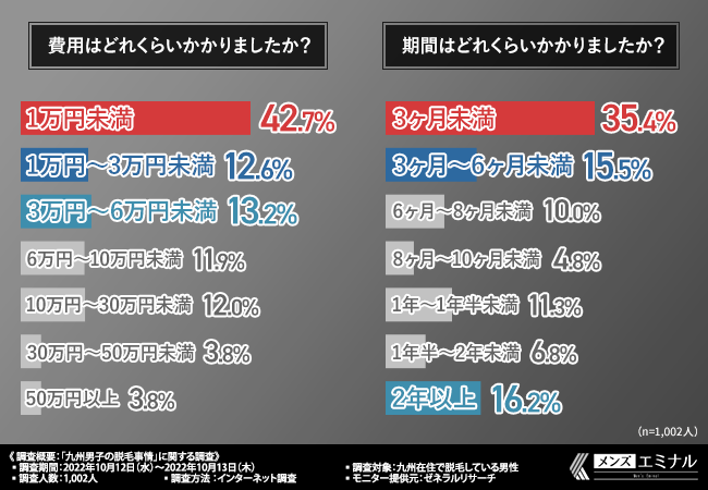 では、九州男子はどのくらい脱毛に費用をかけているのか見ていきましょう。