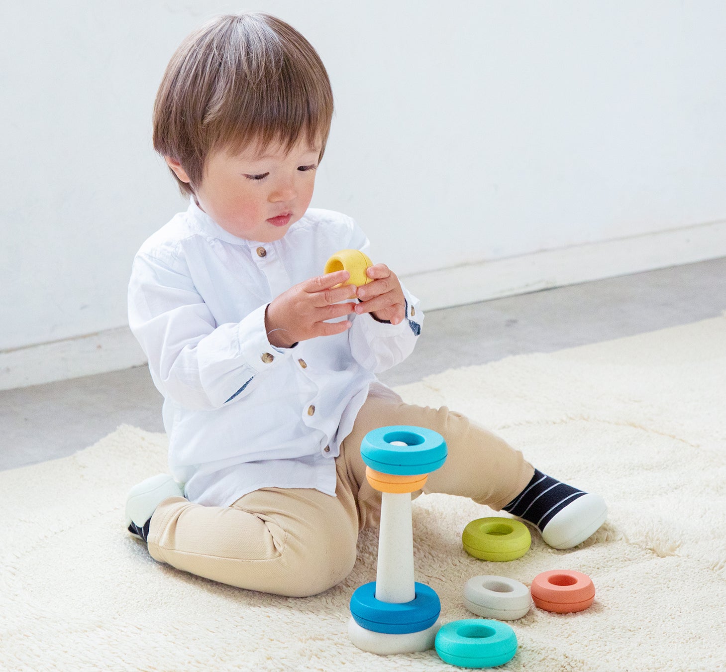 小さなお子様から遊べ、手指の発達や集中力を育める人気のスタッキングトイ。形状の異なる3種類のラインナップは、それぞれに特性があり、お子様の発達にあわせてお選びいただけます。