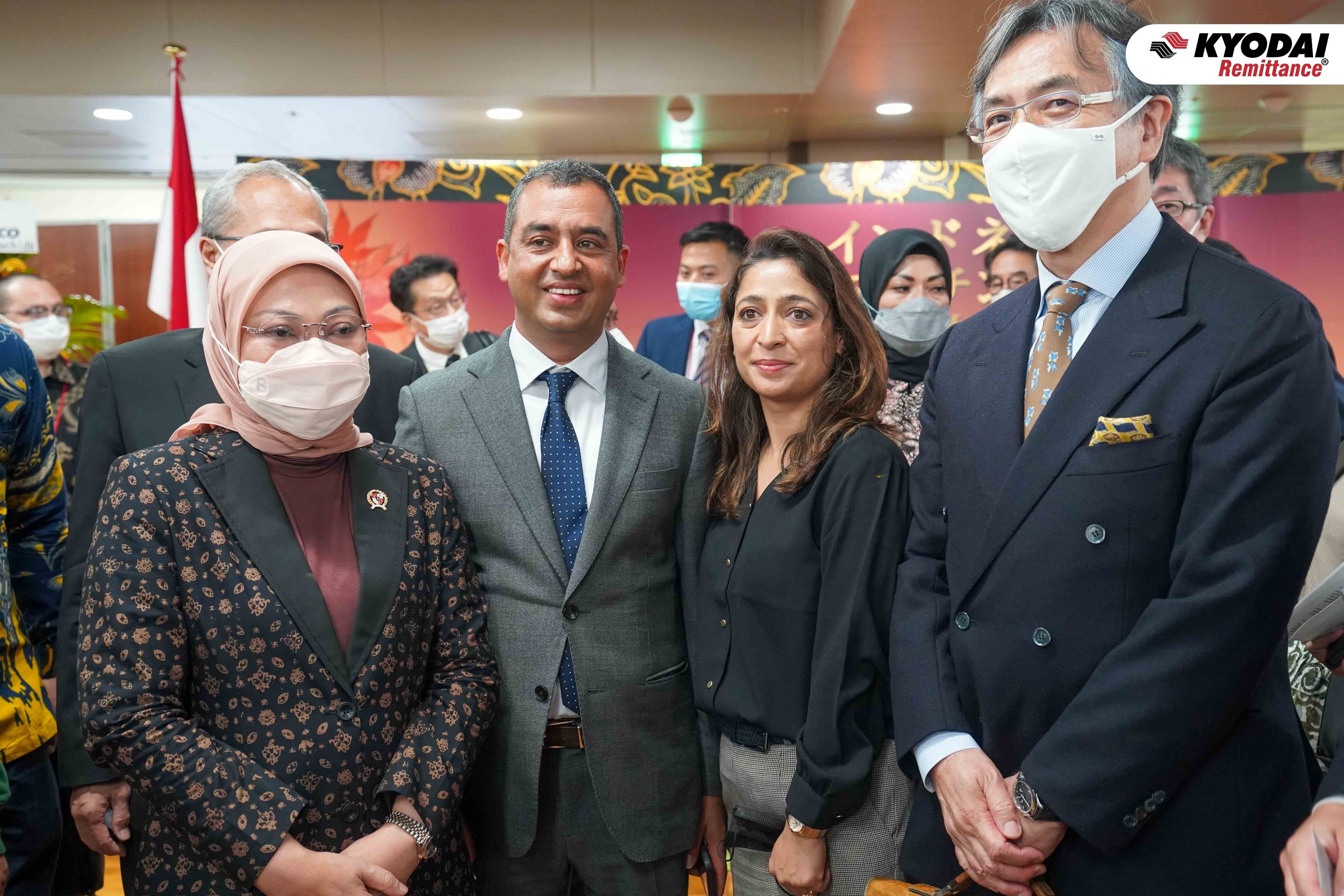 左から、 KYODAI Remittance 代表取締役 木本 結一郎 AP2LNプレジデント Firman Budiyanto インドネシア労働省 Ida Fauziyah労働大臣