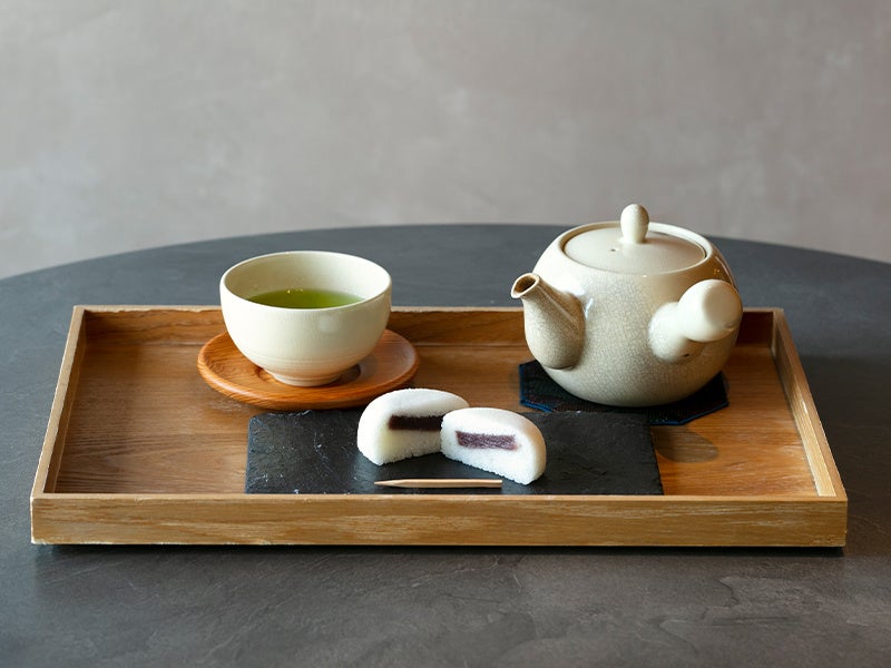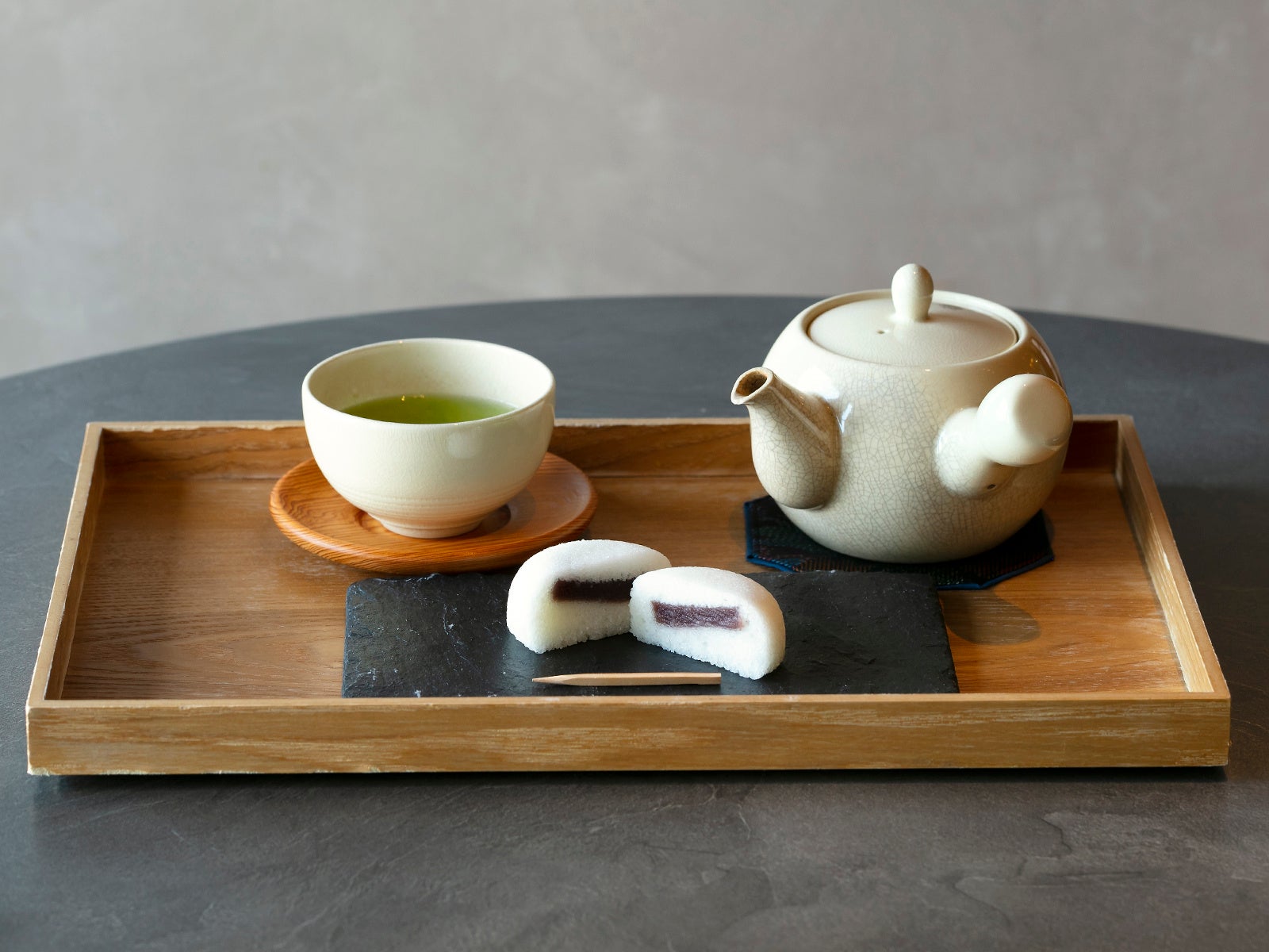 ・お茶を明石屋の「軽羹(かるかん)饅頭」とともに味わう