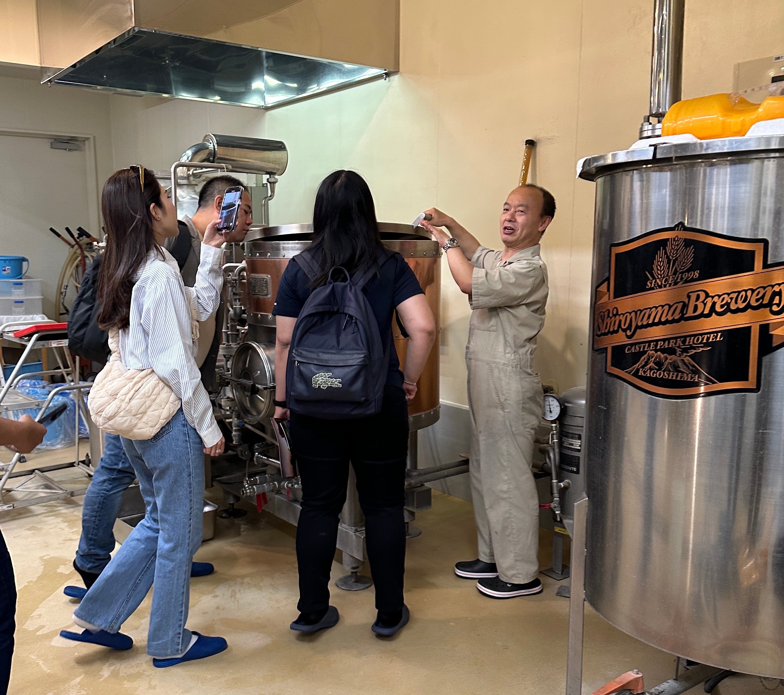 ホテル自家製クラフトビールの魅力を体感する。ブルワーがホテル内ビール工場をご案内、鹿児島の素材を使用した地産地消ブルワリーの特色を知っていただき、各種フレーバーのクラフトビール3種を飲み比べ。