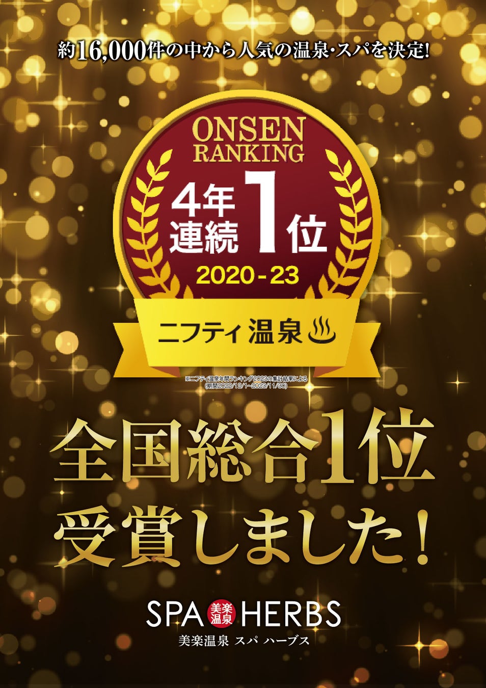 スパリゾート「美楽温泉 SPA-HERBS」がニフティ温泉年間ランキング2023において全国総合1位を4年連続で獲得!関連イベント多数開催!