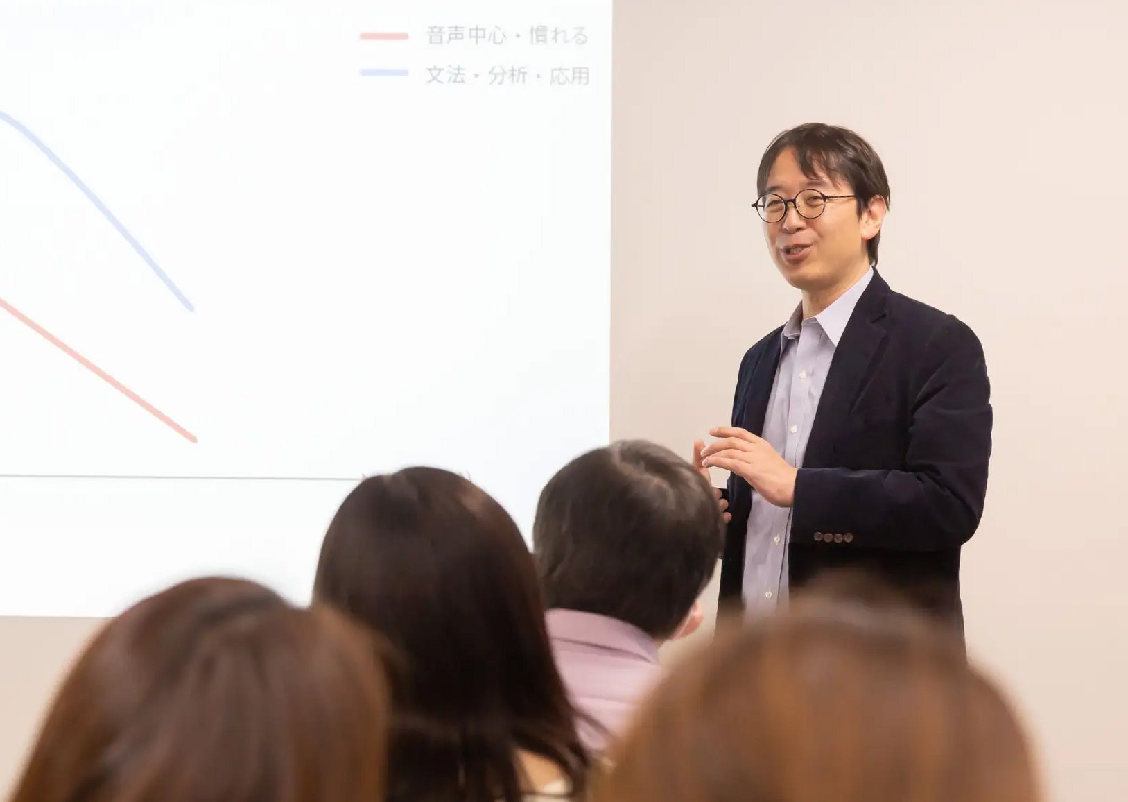 授業は英語母語講師と日本語母語講師それぞれの時間を設け、英日ハイブリッドで指導します。