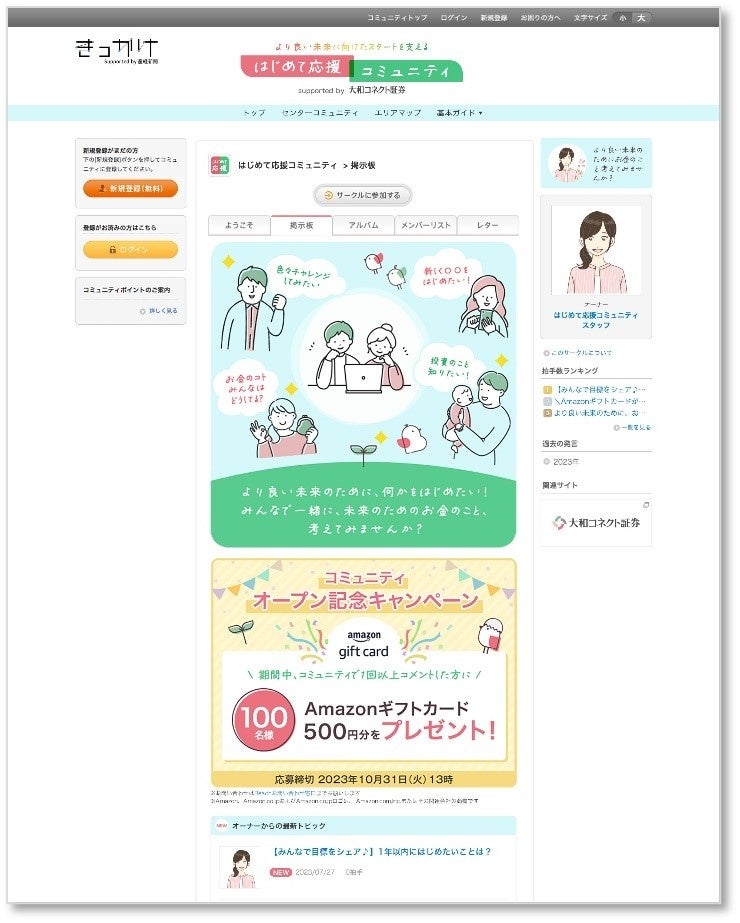 産経新聞社のコミュニティ「きっかけ」内に、新コミュニティ「はじめて応援コミュニティ supported by 大和コネクト証券」がオープン!