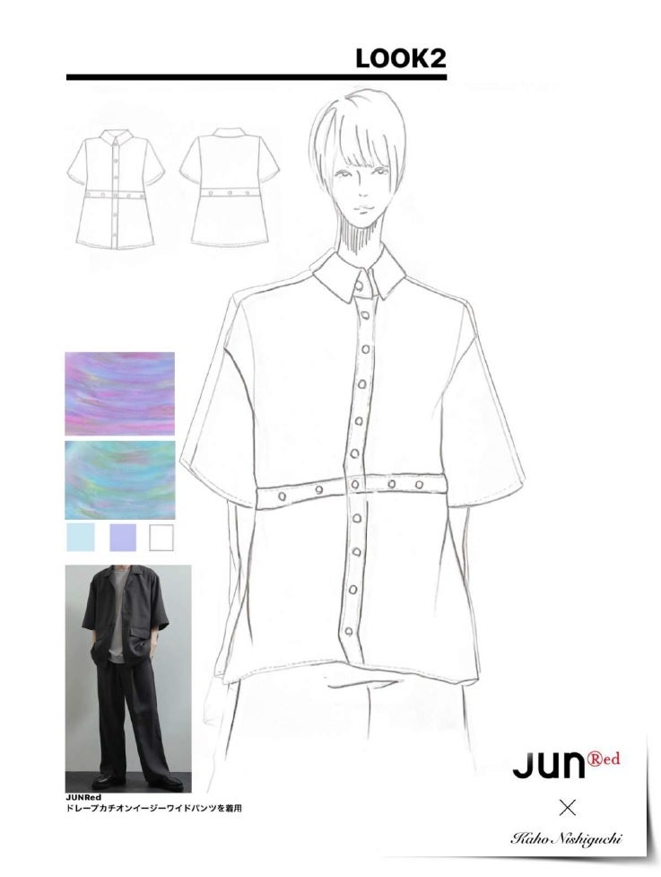 企画書を制作した際にJUNRedさんで大人気のドレープカチオンイージーワイドパンツに合わせて着ることを意識したのでぜひコーディネートで着用していただきたいです。