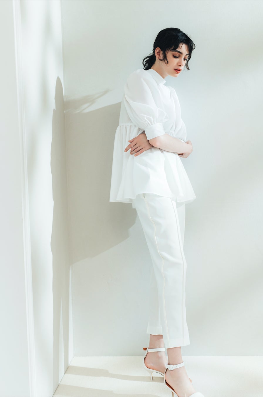 (上)Audire switch blouse(アウディーレスウィッチブラウス)/ color : White,Pink beige,Navy / size : F / price:¥23,100-