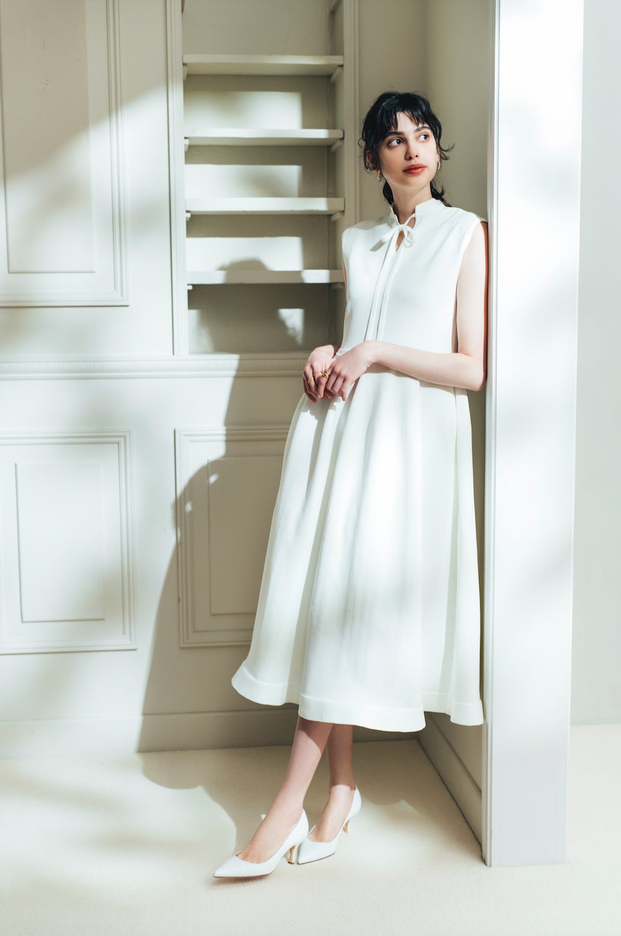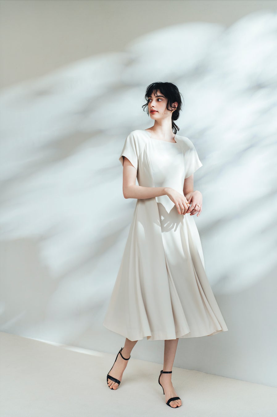 Mulch volume flare dress(マルチボリュームフレアドレス)/ color : Ecru beige,Navy / size : S,M / price:¥35,200-