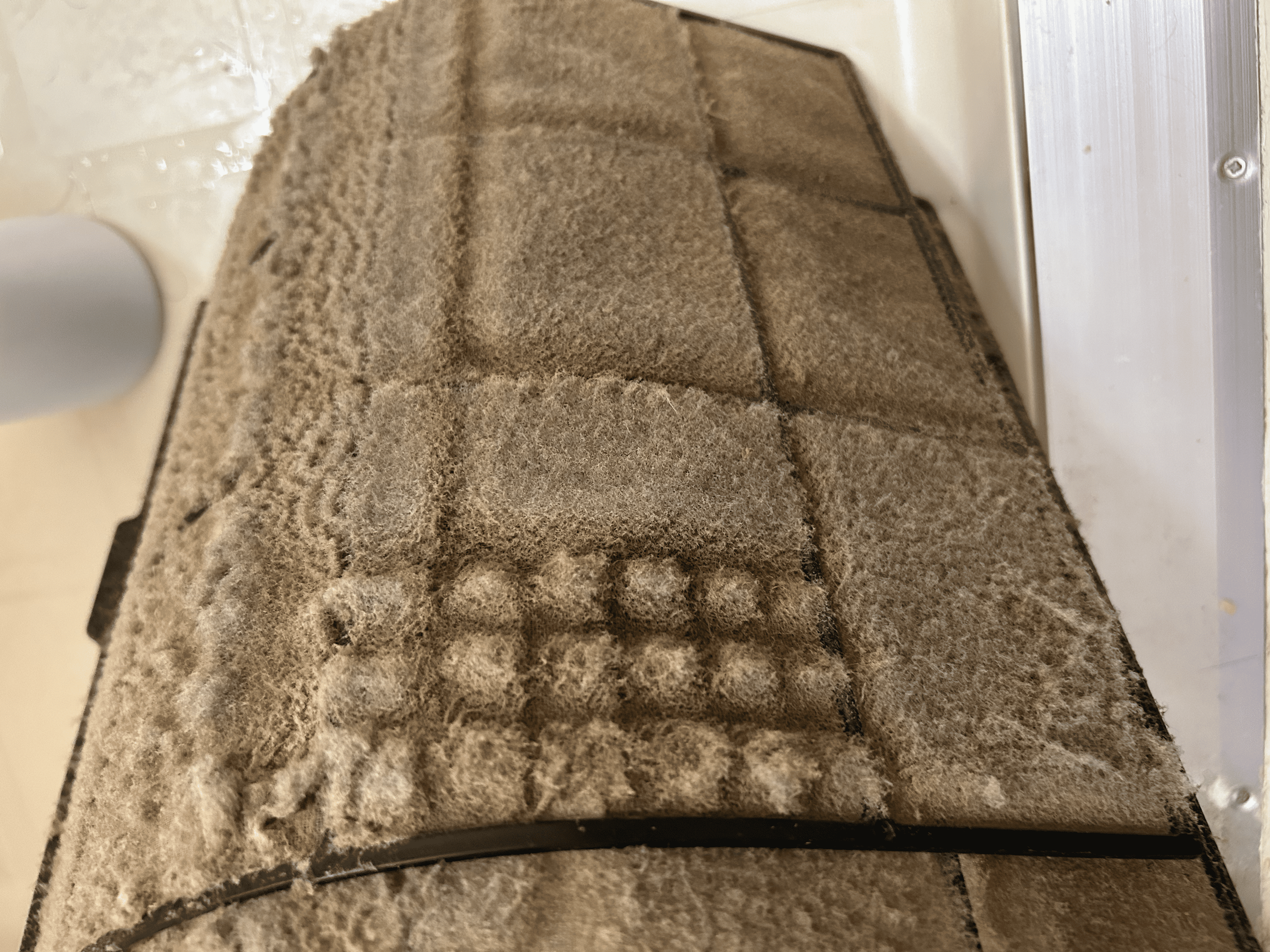 内部にホコリやヤニ汚れが蓄積し、エアコン使用時ににおいが気になる状態でした。効きも悪く、空気のこもりを感じていました。