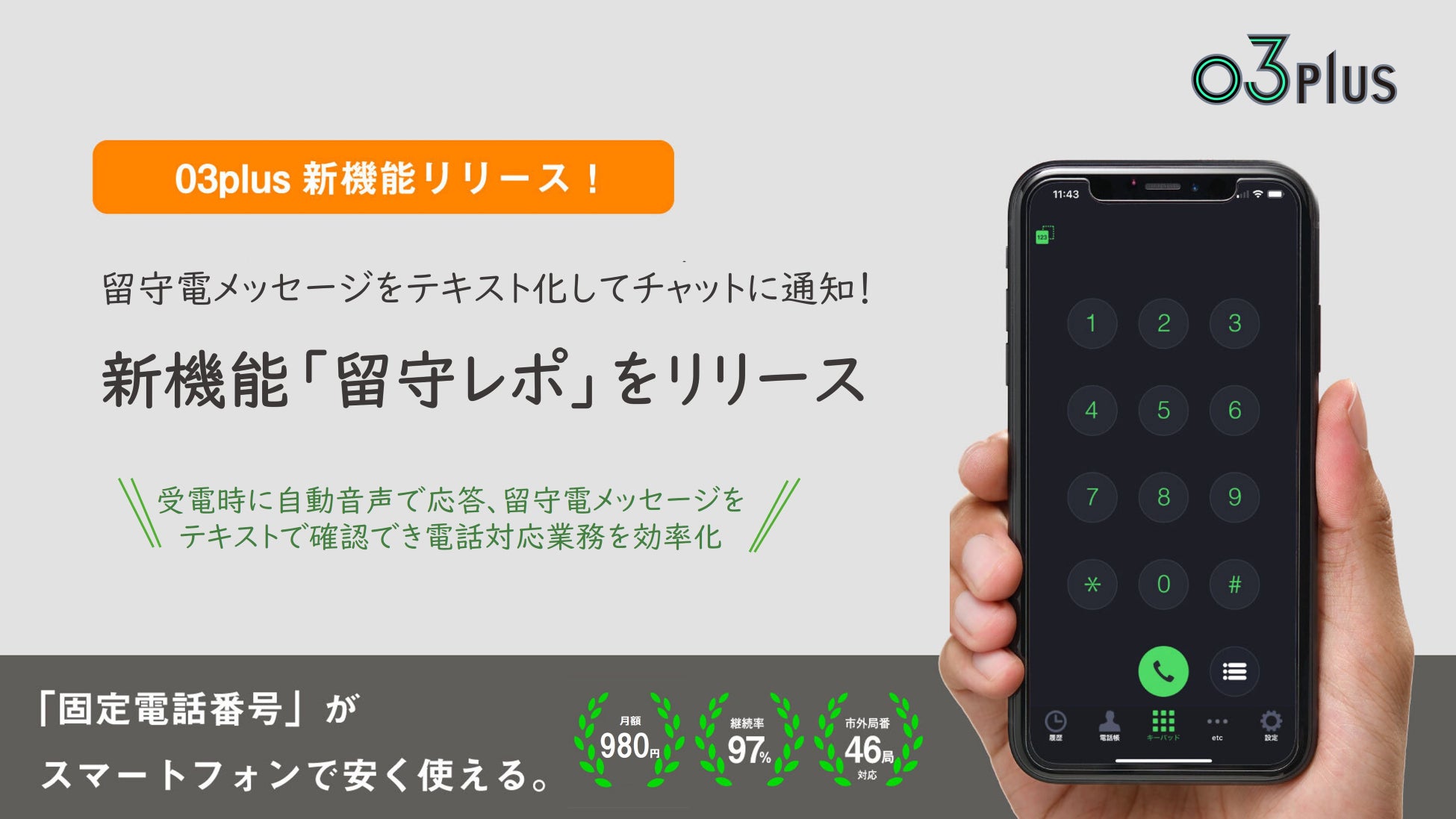 回線工事不要のクラウドPBX「03plus」、留守電内容をテキスト化してチャットに通知する新機能「留守レポ」を販売開始