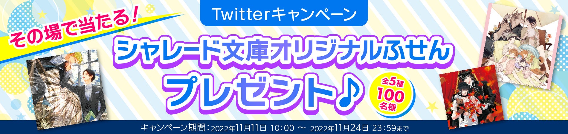 期間中、フォロー&リツイートでシャレード文庫のふせんが、なんとその場で当たります。