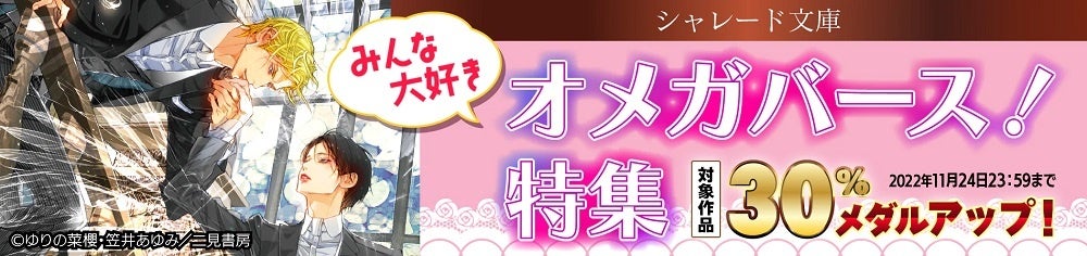 キャンペーン期間中、対象となるシャレード文庫のオメガバース作品に限り、購入金額から30%メダル還元!!