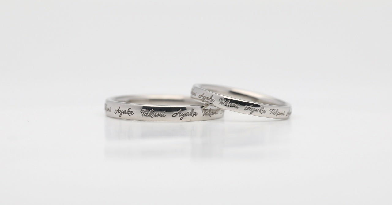 リングの表面に文字を彫り込む“ポージーリング”スタイルのジュエリー。