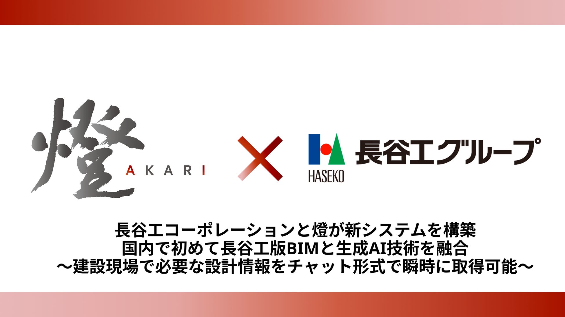 燈株式会社(本社:東京都文京区、代表取締役社長:野呂 侑希、以下「燈」)は株式会社長谷工コーポレーション(本社:東京都港区、代表取締役社長:池上 一夫、以下「長谷工」)と共同で、燈の持つ生成AI(大規模言語モデル)技術と長谷工版BIM※1を組み合わせた新たなシステム(以下「本システム」)を構築したことをお知らせします。本システムにより建設現場での設計図書確認が更に効率化します。建設現場での活用を目的にBIMデータと生成AI技術を組み合わせたシステムの開発は国内初※2となります。