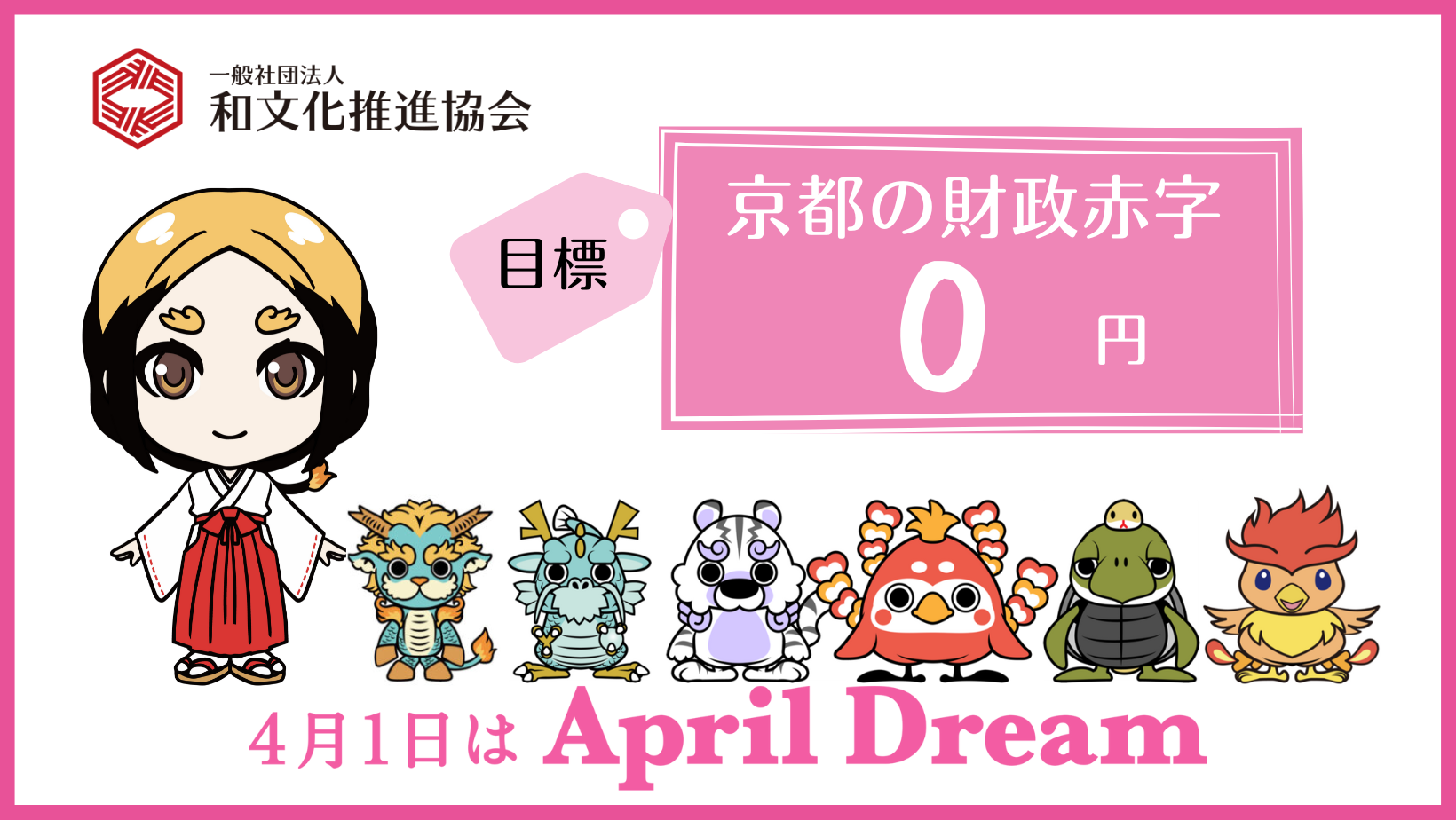 和文化推進協会は、京都を起点に世界に羽ばたく個人・法人の皆様の「夢を実現する」ことを目指し、「京都の財政赤字0円」を目標に邁進します。
