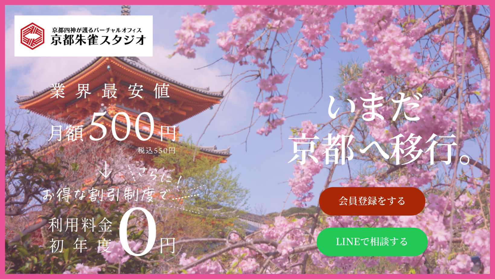 バーチャルオフィス「京都朱雀スタジオ」を活用して頂くことで