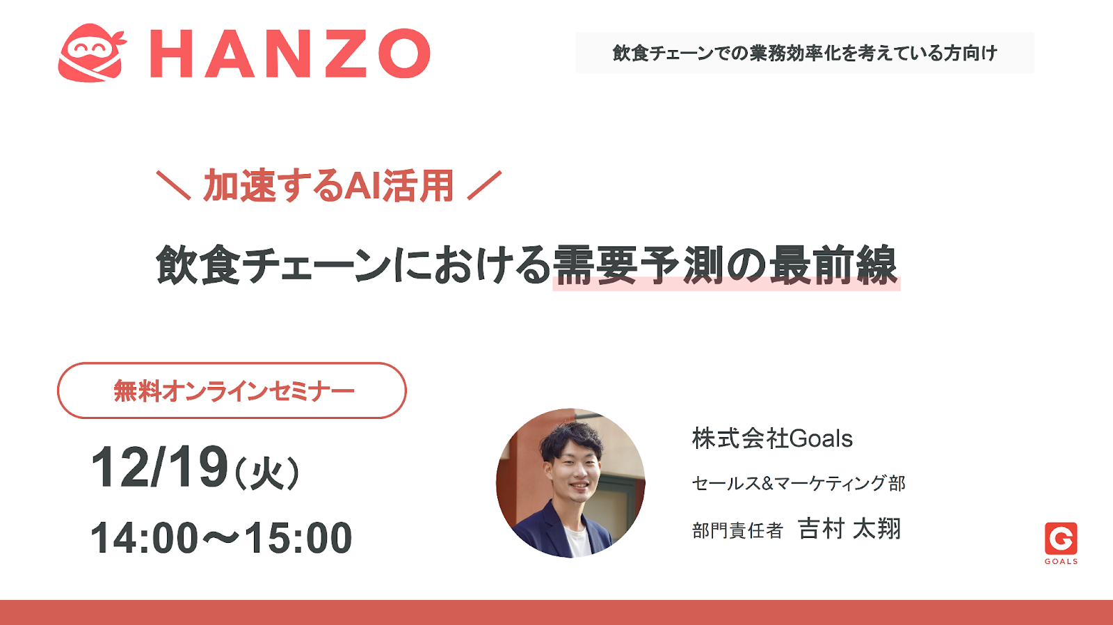 【12/19(火)開催】外食企業向けオンラインセミナー「加速するAI活用:飲食チェーンにおける需要予測の最前線」を開催