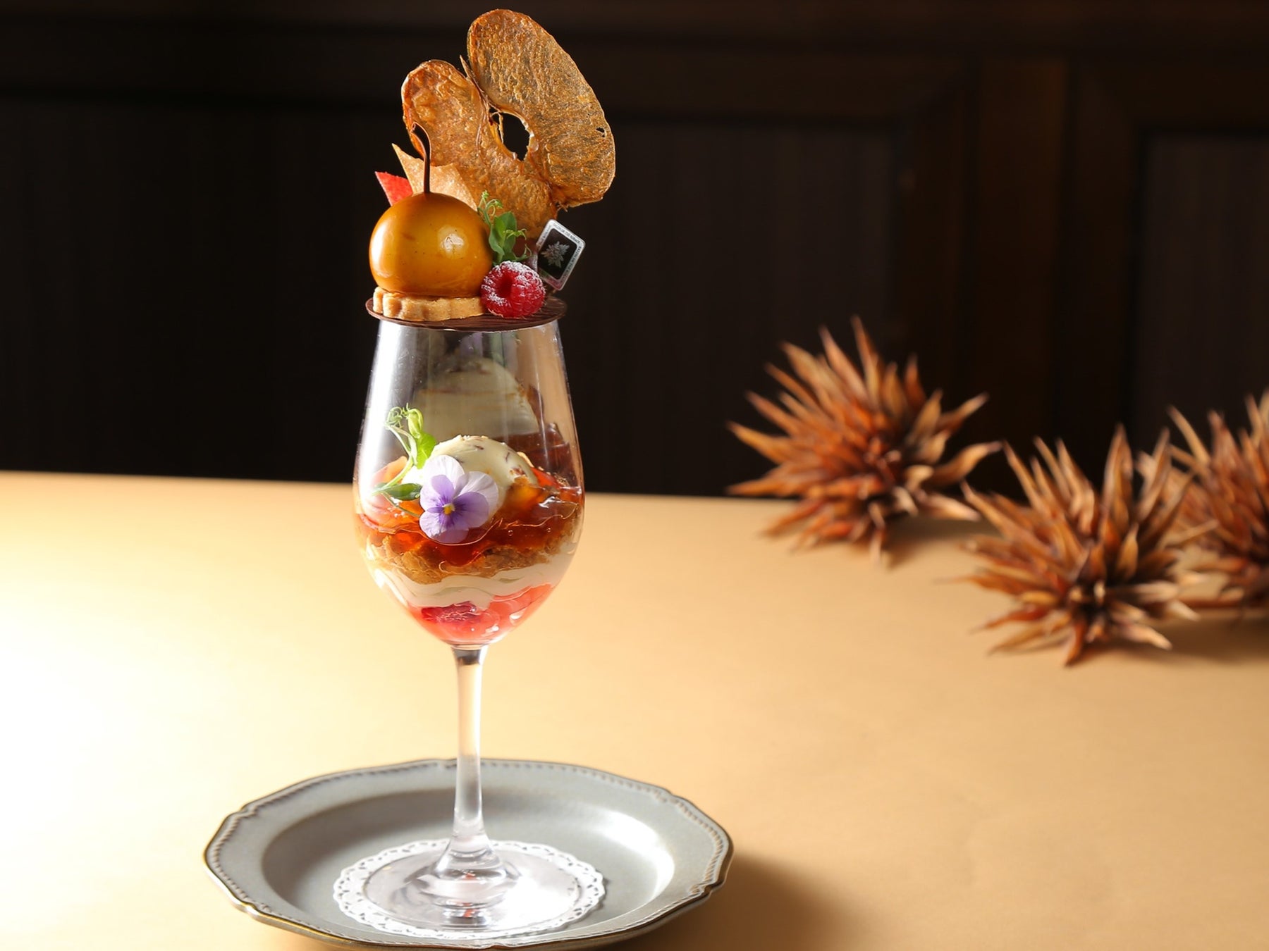 当ホテル直営の芦ノ湖畔に佇む絶景カフェ“サロン・ド・テ ロザージュ”では、9~11月の期間中、グラスに注ぎ入れられたワインのように仕上げた美しく芳醇な和梨のパフェ『秋麗 akiurara』を発売します。グラス内は紅茶のジュレ、ヨーグルトのクリーム、和梨のコンポートなどで綺麗な断層を作り上げ、グラスの口に乗せたチョコレートには和梨のムースやチップス、ベリーを添えて実りの秋を演出。ティーインストラクターこだわりの紅茶とともにぜひご堪能ください。