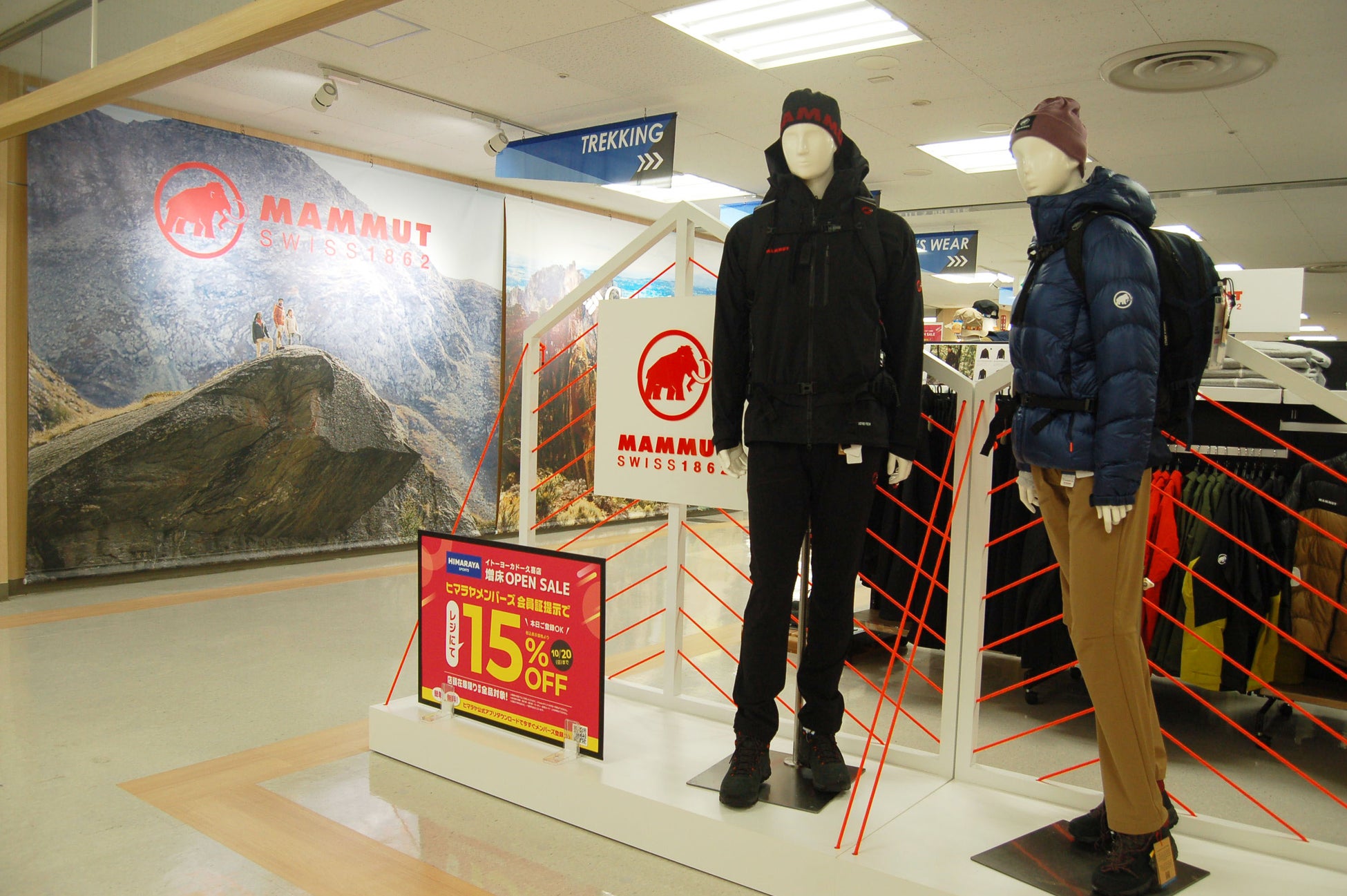 モンベル、マムート、コロンビアなど人気ブランドの商品を多数展開。注目のマムートコーナーは、品揃えはもちろん、その世界観が凝縮された売場も必見です。またザックはグレゴリー、コールマンなど15ブランド400品番以上と、登山のみならず普段使いにも人気なアイテムが揃っています。