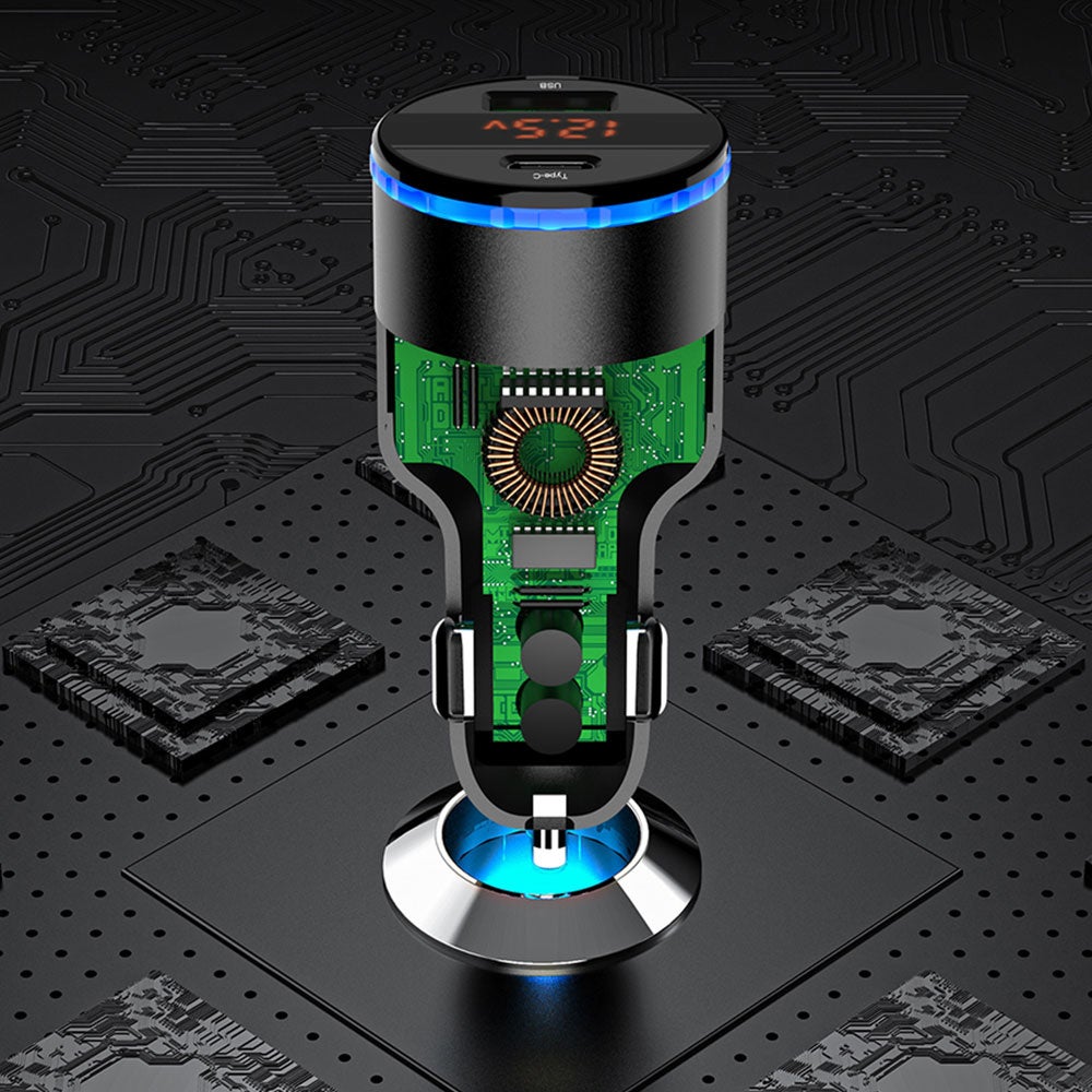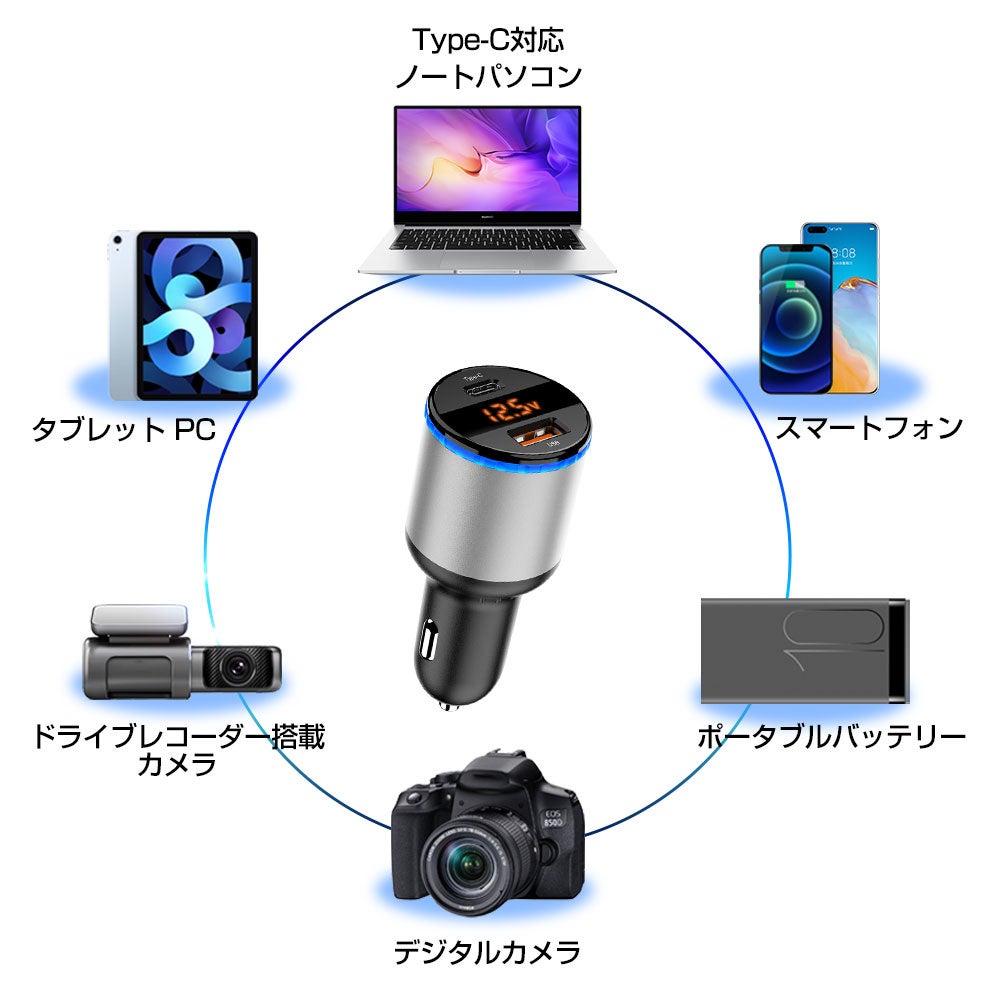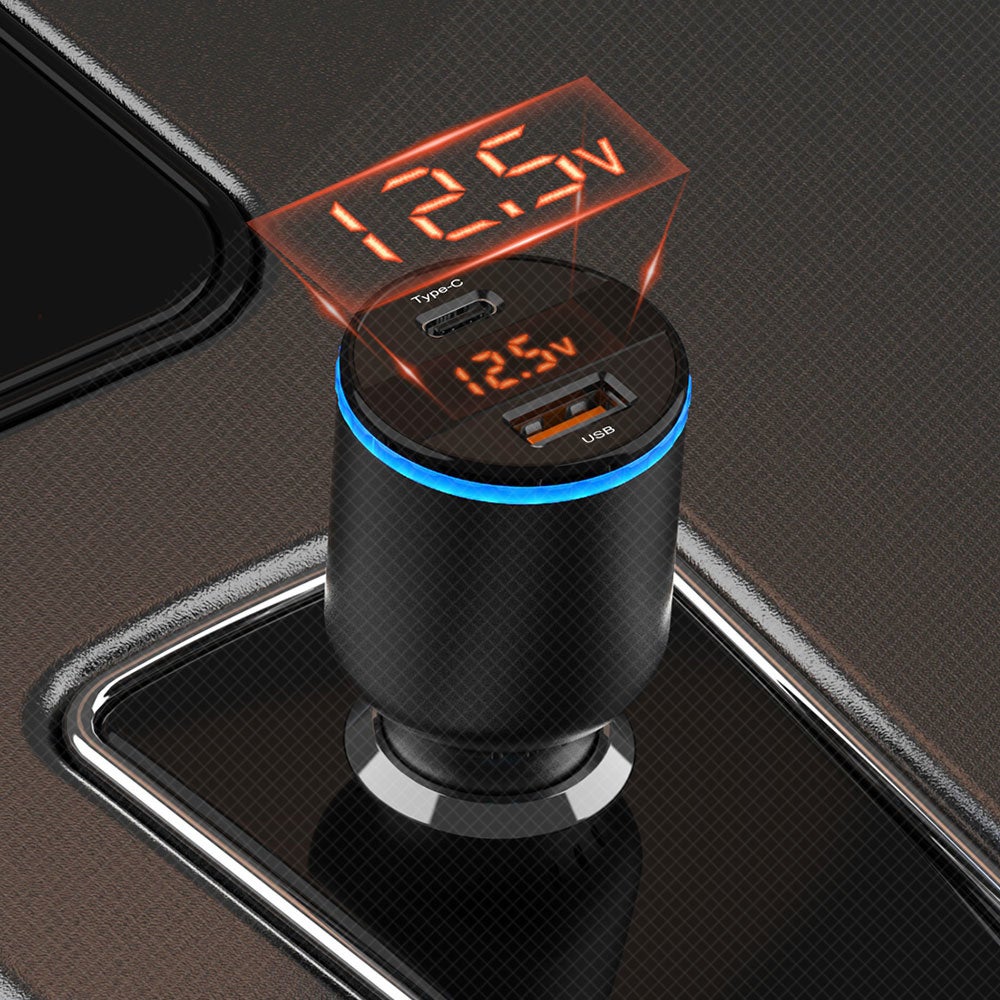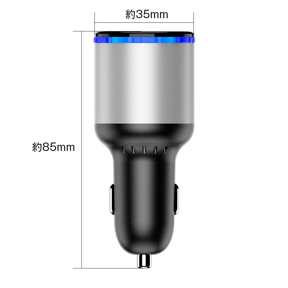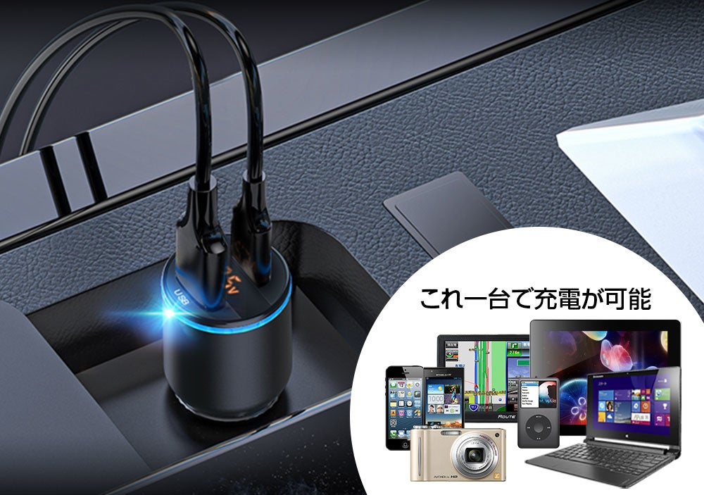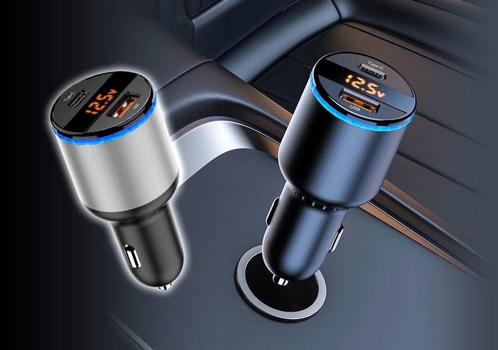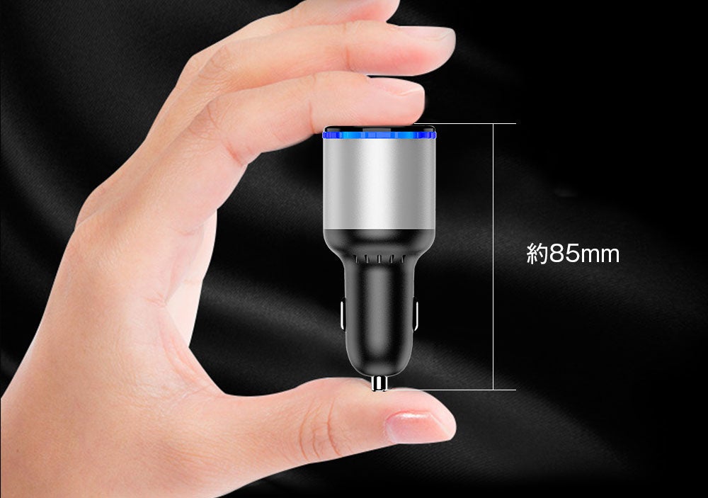 LEDディスプレイを搭載する車載充電器です。車のリアルタイムな電圧を表示できます。