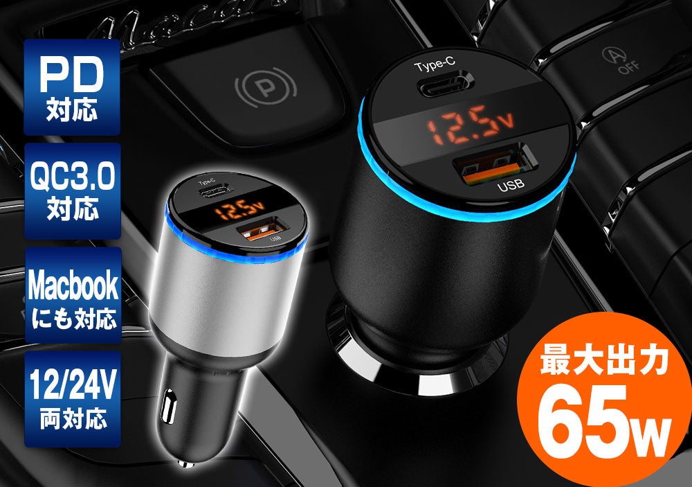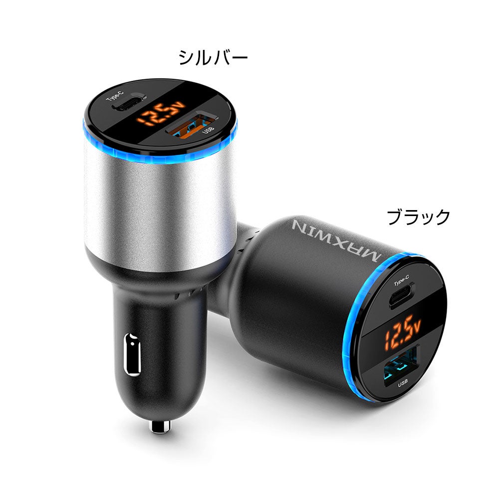 Macbookにも使用できる!!PD USBタイプC+QC3.0 USB対応 !圧倒的な充電速度ができる!2口同時給電LEDライト付きの”USBカーチャージャー”が「2色展開」で新登場!