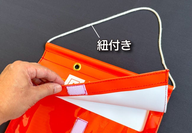 1.マチを広げ、厚手の回覧板もゆったりと収納できるようにしました。