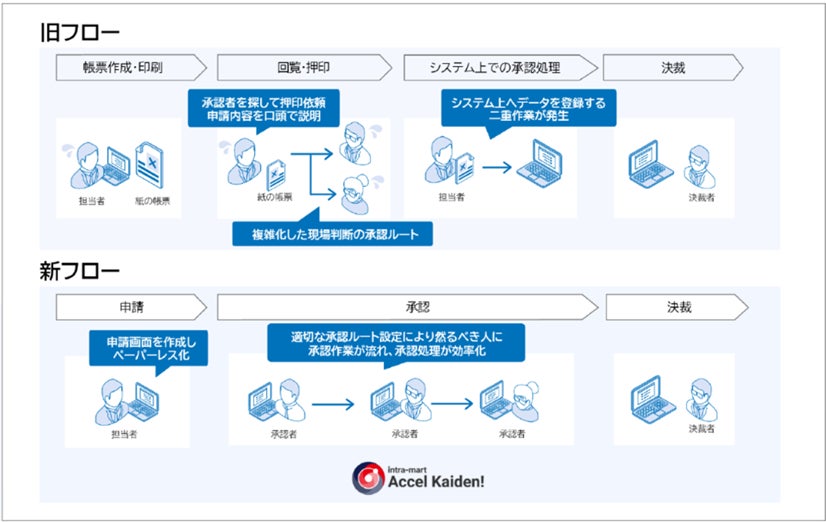 →申請・承認作業が承認者の不在や業務都合等に影響されないことで、⼤幅な効率化に成功