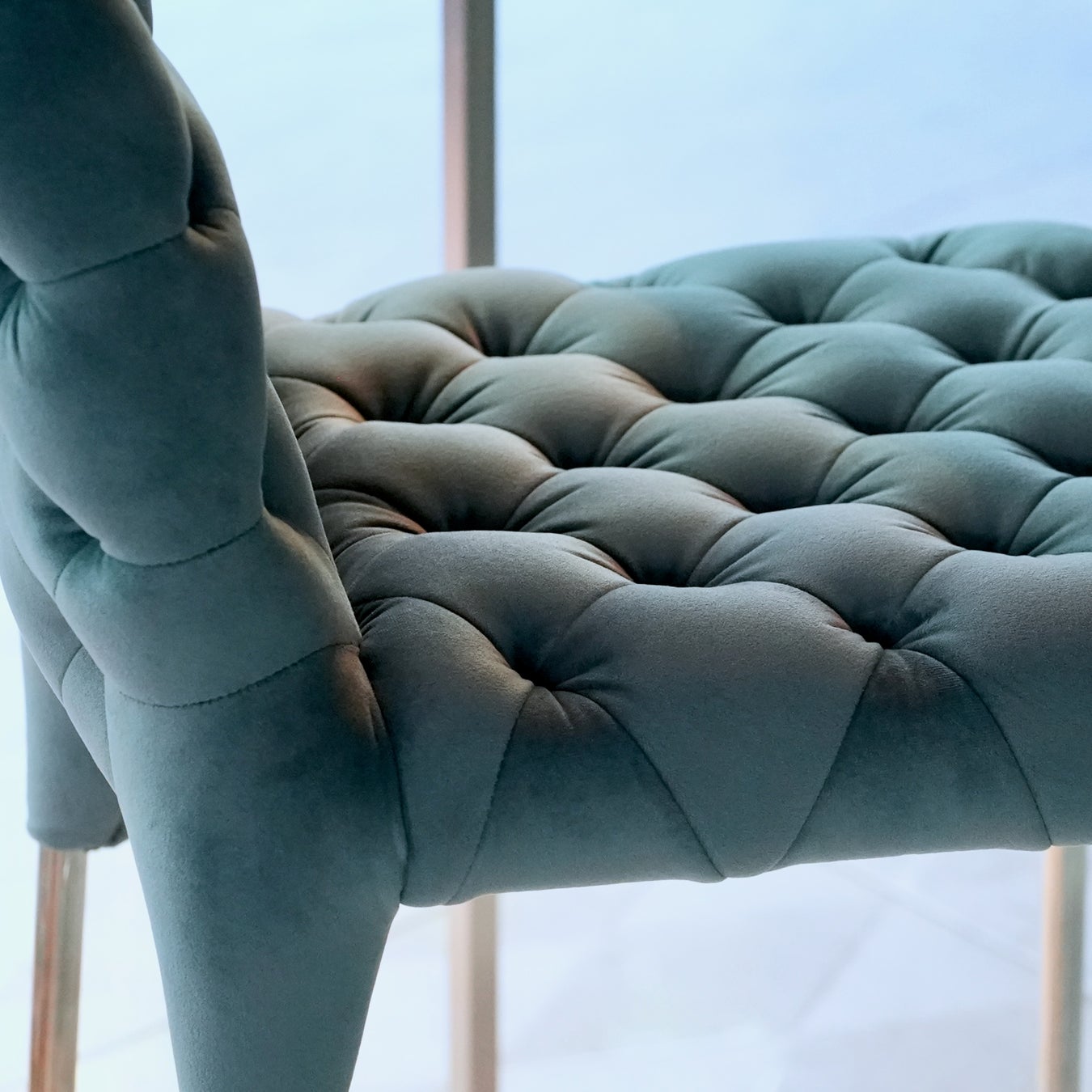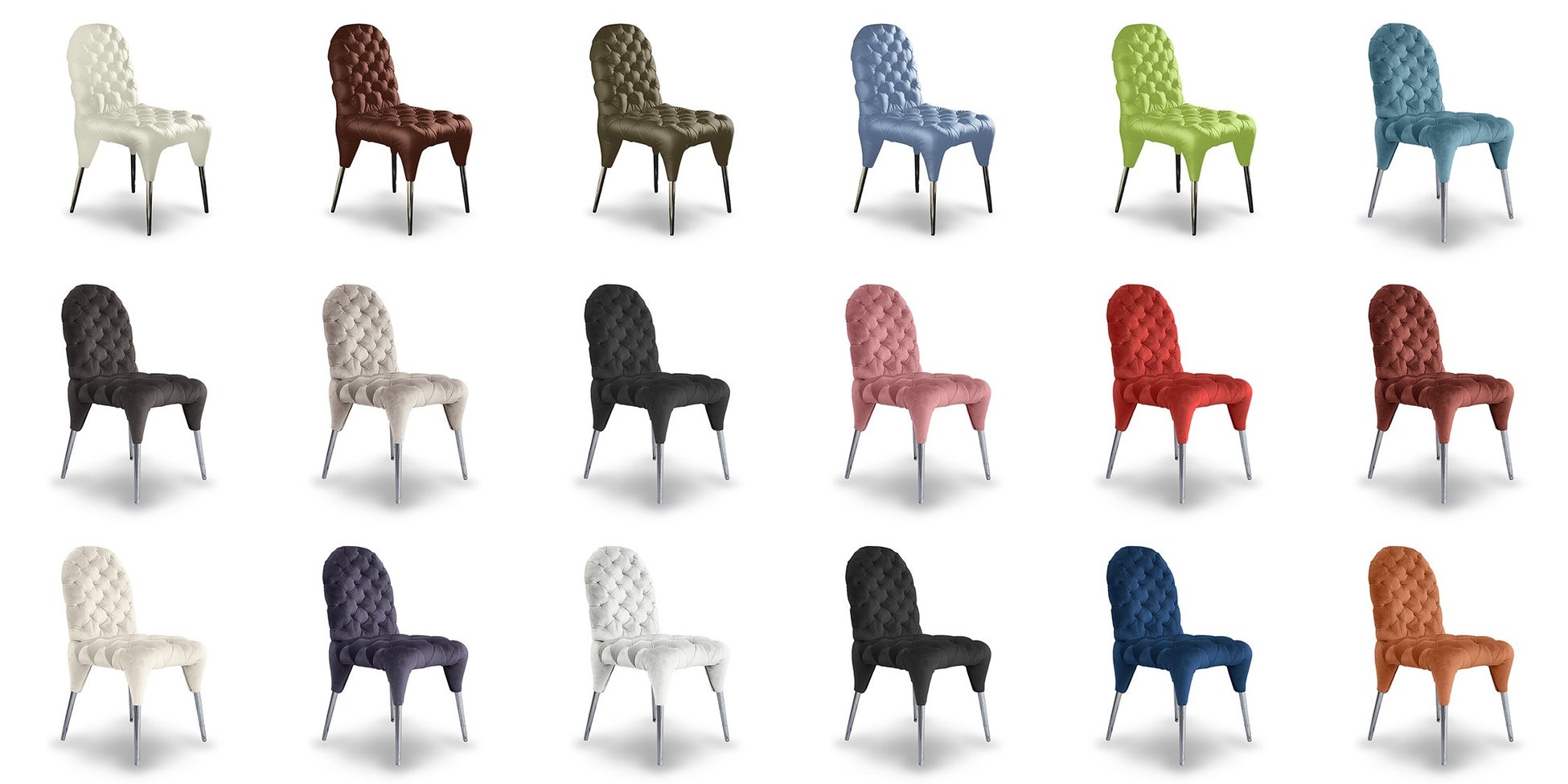 集チェアに採用しているベルベットは、見る角度や光の当たり方により表情が変わります。遊び心はありながらも、上品で落ち着いた風合いです。レザーは、アップルグリーンやケンブリッジブルーのような鮮やかなカラーでも厳選された上質なレザーの質感により、洗練されたインテリアを演出します。カラーを上手く取り入れることで、個性あるお部屋づくりが叶います。