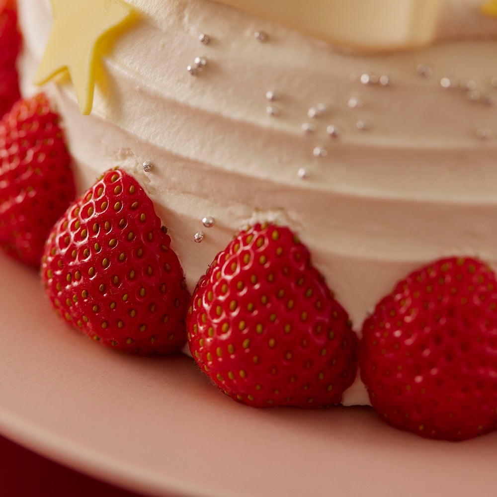 真っ白な生クリームに真っ赤な苺、星をイメージしたアラザンと黄色い星が輝きます。