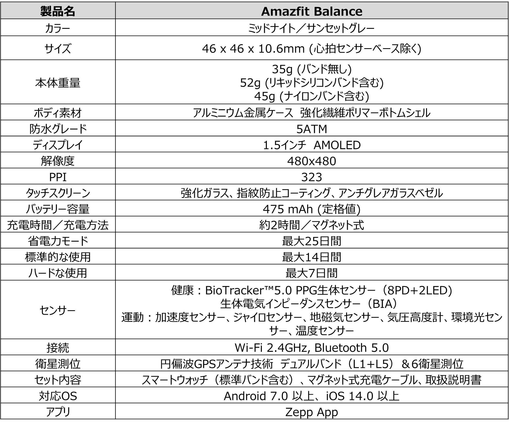 公式オンラインストア:https://www.amazfit.jp/products/amazfit-balance