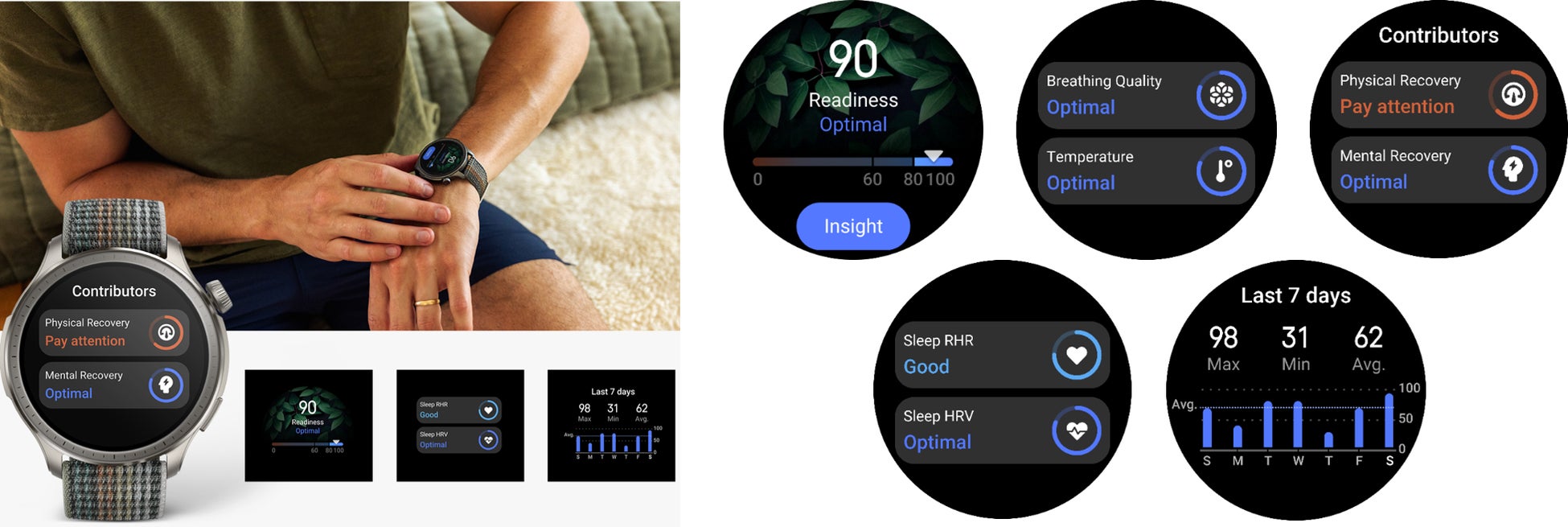 バッテリーと同じように、人間の体も日中の活動と夜間の睡眠のバランスをとる必要があります。レディネス(Readiness)とは、毎朝身体が充電され、新しい一日を迎える準備ができているかどうかを教えてくれる指標です。身体的回復、メンタルの回復、健康管理を3つの柱とし、心拍数と心拍変動(HRV)、ストレス、睡眠中の呼吸の質と安静時心拍数(RHR)、体温、日常活動などのデータに基づいて、疲労と回復を測定します。
